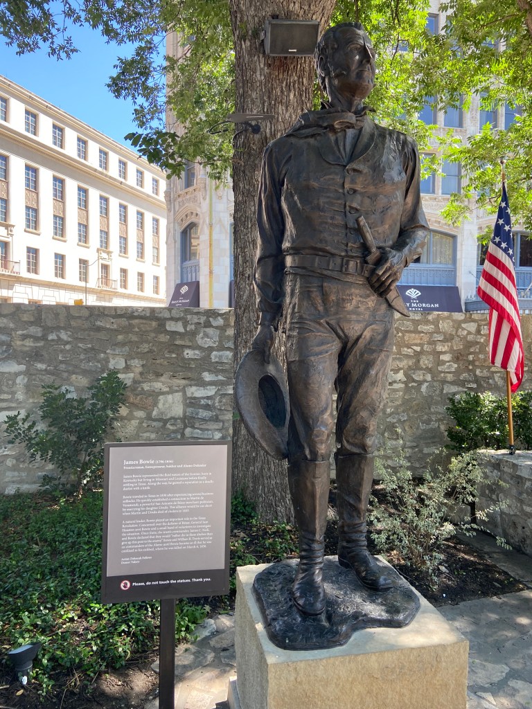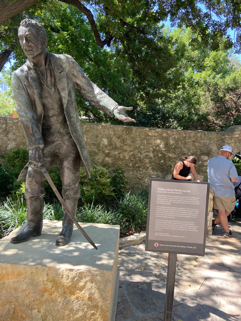 After we walked through the Alamo church, we took the kids into the Gift Shop and bought a few items. We walked the grounds of the Alamo where there are monuments and statues honoring those who fought and died at the Alamo. Stationed throughout the complex are informational signs/ plaques/ timelines that provide you ample information about the history of the Alamo and its importance.