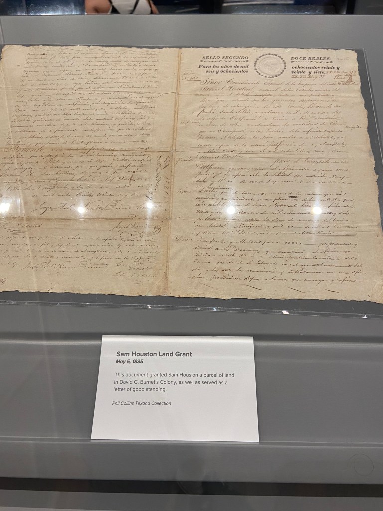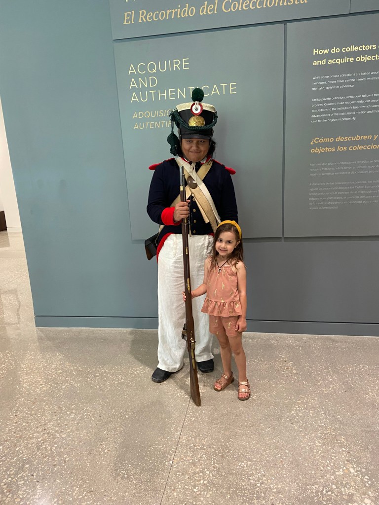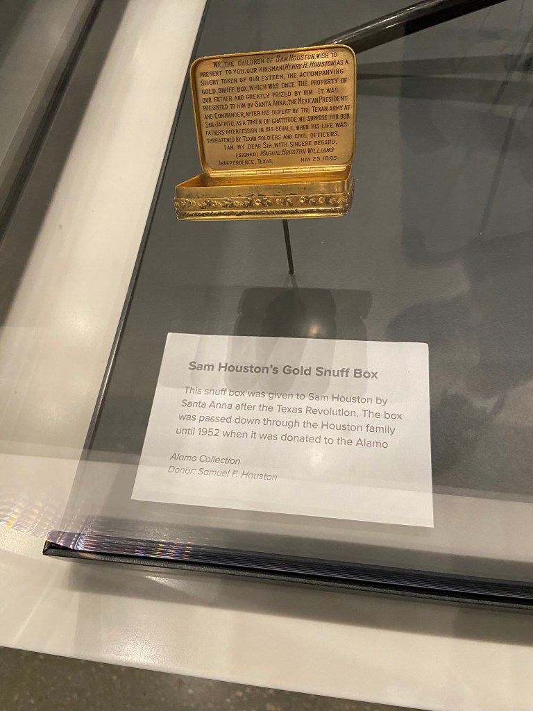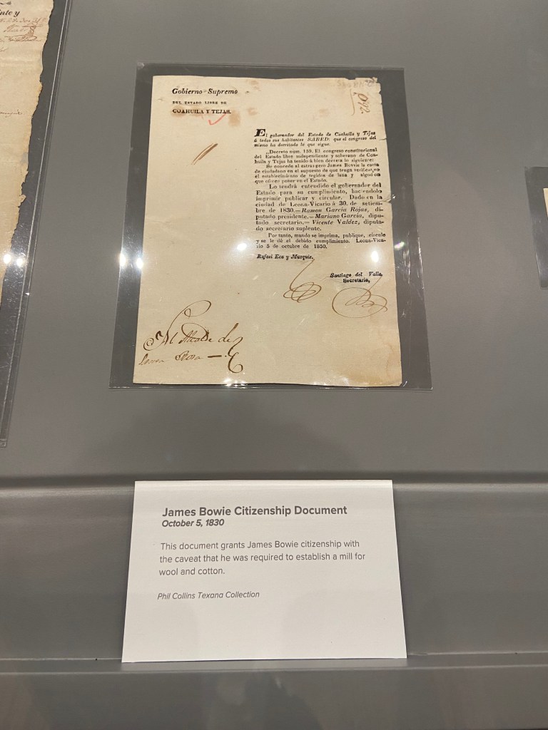 After the kids were fed we headed back to the Alamo complex to visit the collections at the Alamo Exhibit in the Ralston Family Collections Center. The collections did not disappoint for the $12/ adult tickets. Our kids were young enough to be free. The exhibit displayed weapons and artifacts with strong ties to the Texas Revolution and the Alamo. Before I visited Texas, I never knew the connection between Phil Collins and the Alamo. Long story short, Collins developed a strong liking to the Alamo story and collected many artifacts. Later, he donated these artifacts back to the Alamo. Therefore, many of the artifacts in the collections are part of the Phil Collins collection. There is also an impressive diorama of the Alamo complex as it appeared in 1836, with Phil Collins narrating events of the battle.
