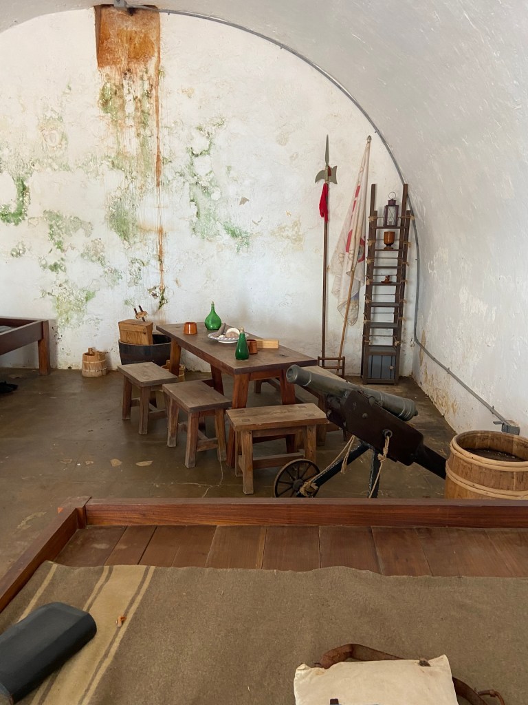 San Cristobal was built with a dry moat (like El Morro) and a series of tunnels to protect soldiers from enemy attacks. My family and I had the opportunity to walk through the longest hidden tunnel that led from the main plaza to an outside section of the fort. My children were brave enough to walk through the dimly lit tunnel.