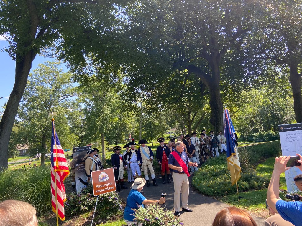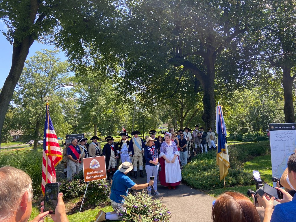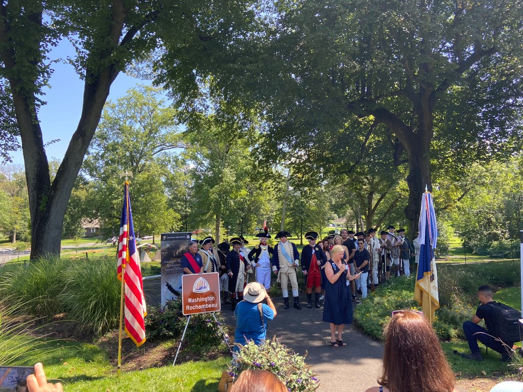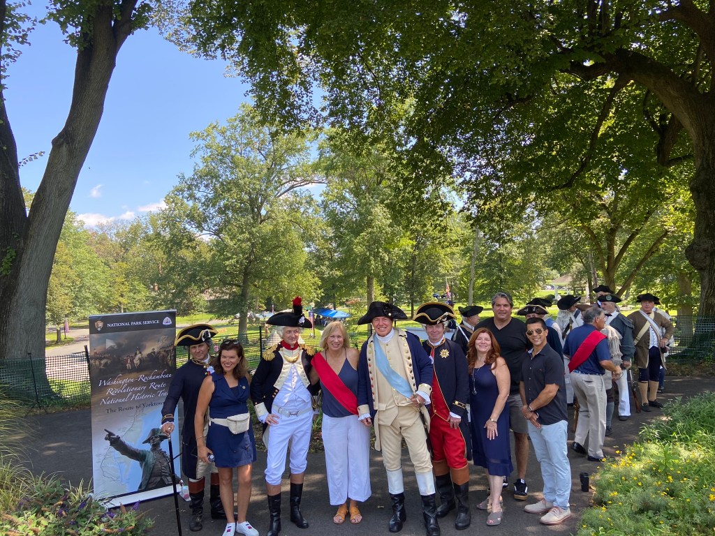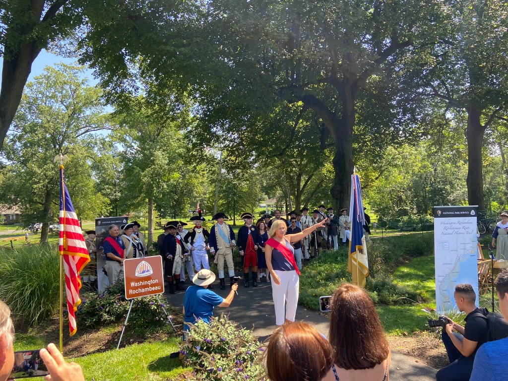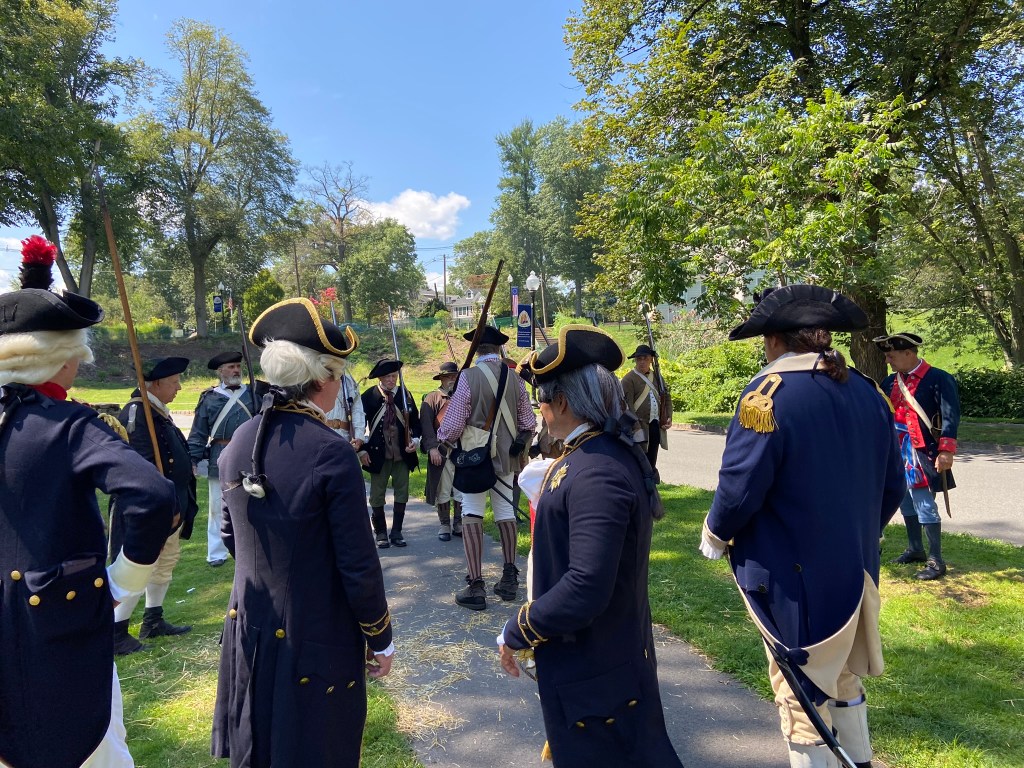 The event began with an opening ceremony at Mindowskin Park. Re-enactors included Washington, Rochambeau, General Chastellux, and the Marquis de Lafayatte. Speakers during the opening ceremony included Julie Diddel, W3R-NJ Chair, who explained the significance of the Washington-Rochambeau Historical Route, as well as Westfield’s role in the Revolution. She did a fantastic job organizing and running the event. Speakers also included Westfield mayor Shelley Brindle, State Senator Jon Bramnick, and others.