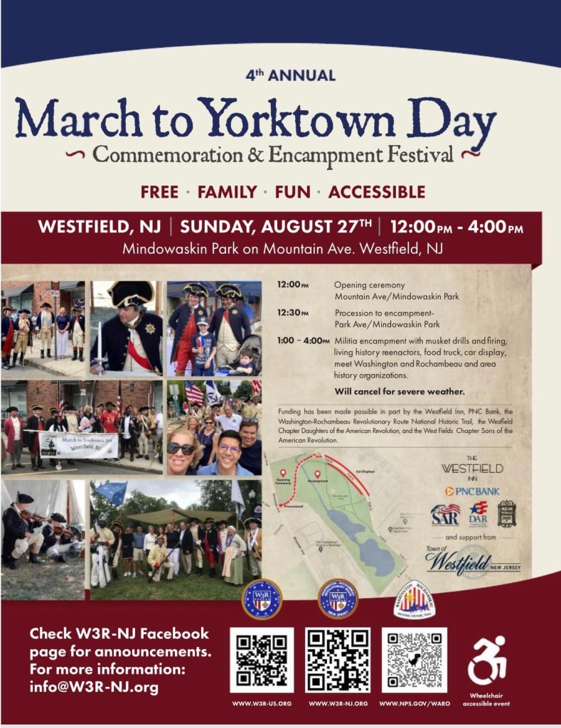 My daughter and I had a wonderful time at the March to Yorktown Day in Westfield. The event was another reminder of the rich history in New Jersey and the strong ties that the state has to the American Revolution. The Washington-Rochambeau Revolutionary Route Association New Jersey did a great job providing an event that was fun and informative for all ages. I look forward to attending again next year!