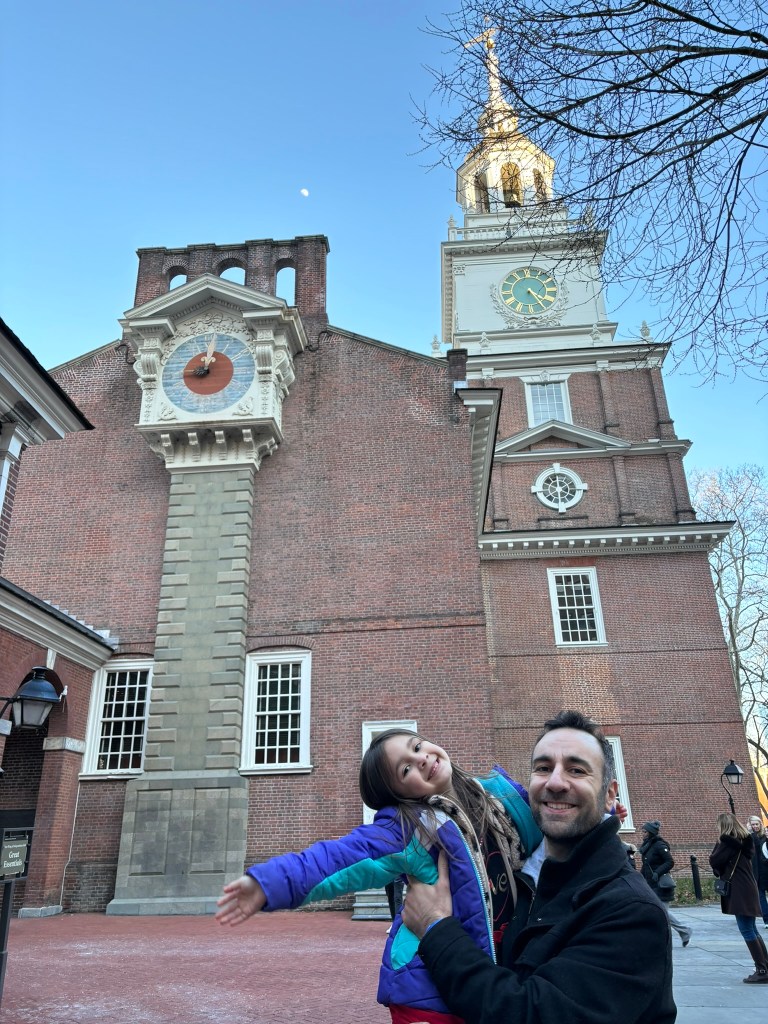 While we didn’t get to go inside Independence Hall, we did have an opportunity to go in Congress Hall which was a first time visit. It was truly remarkable to be in the room where the first Congress sat in our nation’s history. Philadelphia was the nation’s capital from 1790- 1800 while the new capital, Washington DC was being constructed. The 1790s represents one of the most interesting times in our nation’s history. When the Constitution was written, the framers did not take into account the rise of political parties. But within Washington’s cabinet, and within the Congress, two separate parties formed during Washington’s two terms in office. The nascent country experienced the first debates between the Federalist Party (led by Hamilton) and the Democratic-Republicans (led by Jefferson). Congress Hall witnessed the earliest debates over the size and strength of the national government, the economy, and foreign allies. The House of Representatives met on the first floor of Congress Hall, while the senate met on the second floor. When the capital moved to DC in 1800, Congress Hall went back to its original purpose serving as a courthouse. After leaving Congress Hall, the family headed out for dinner.