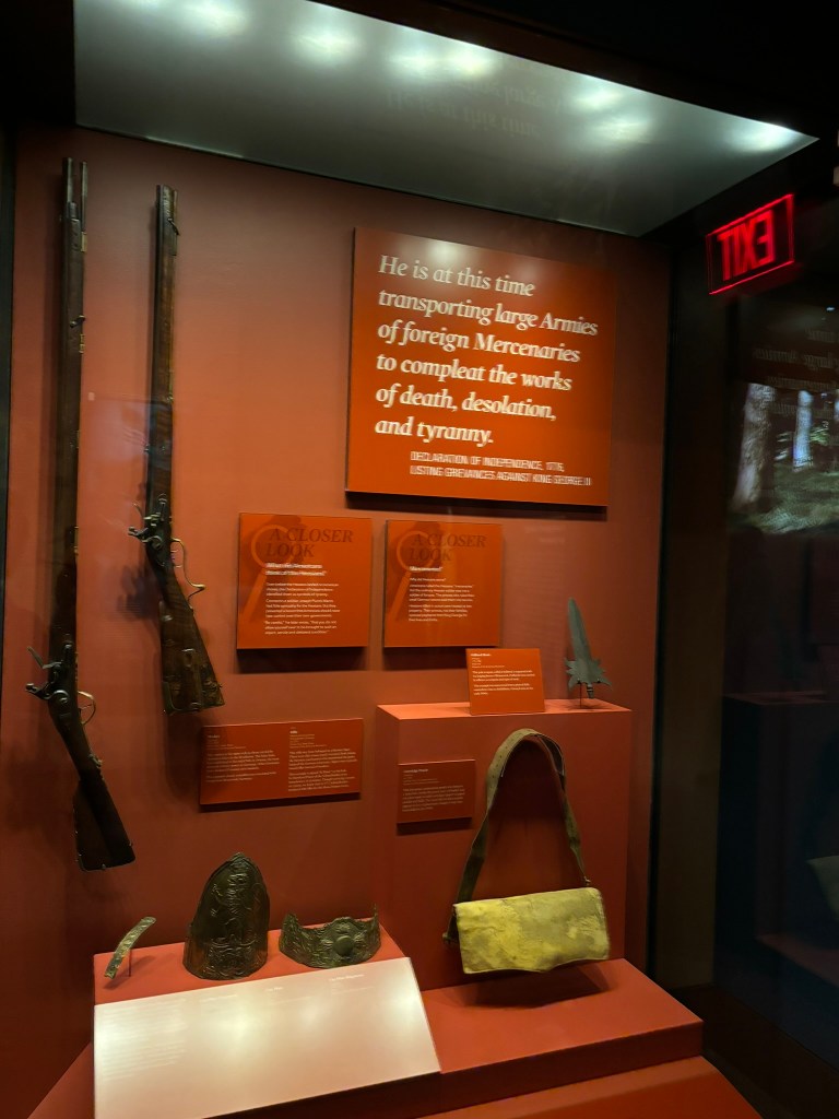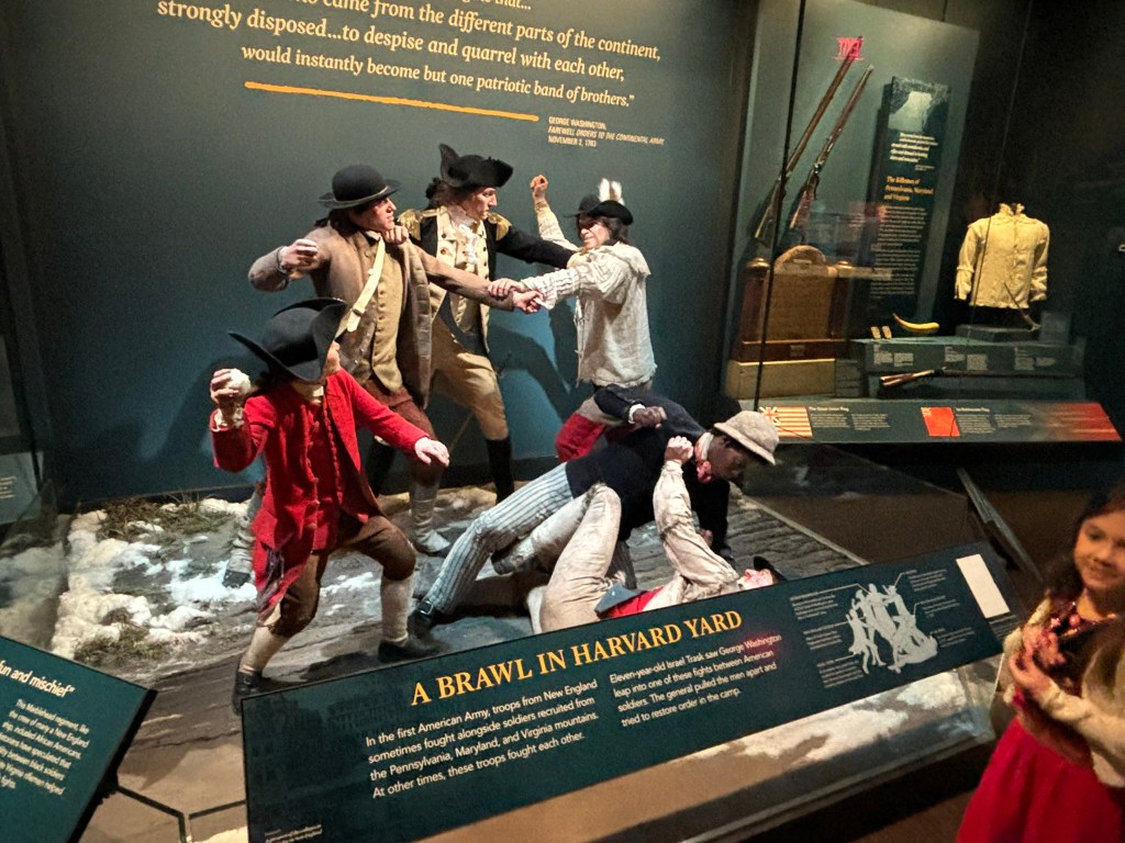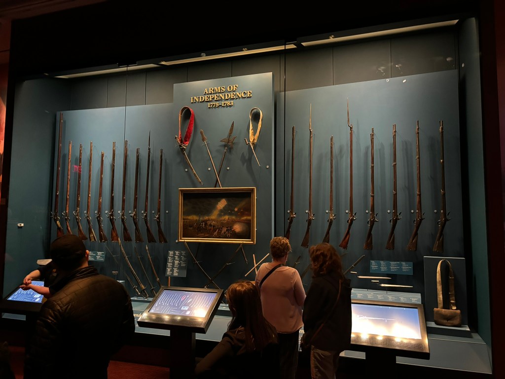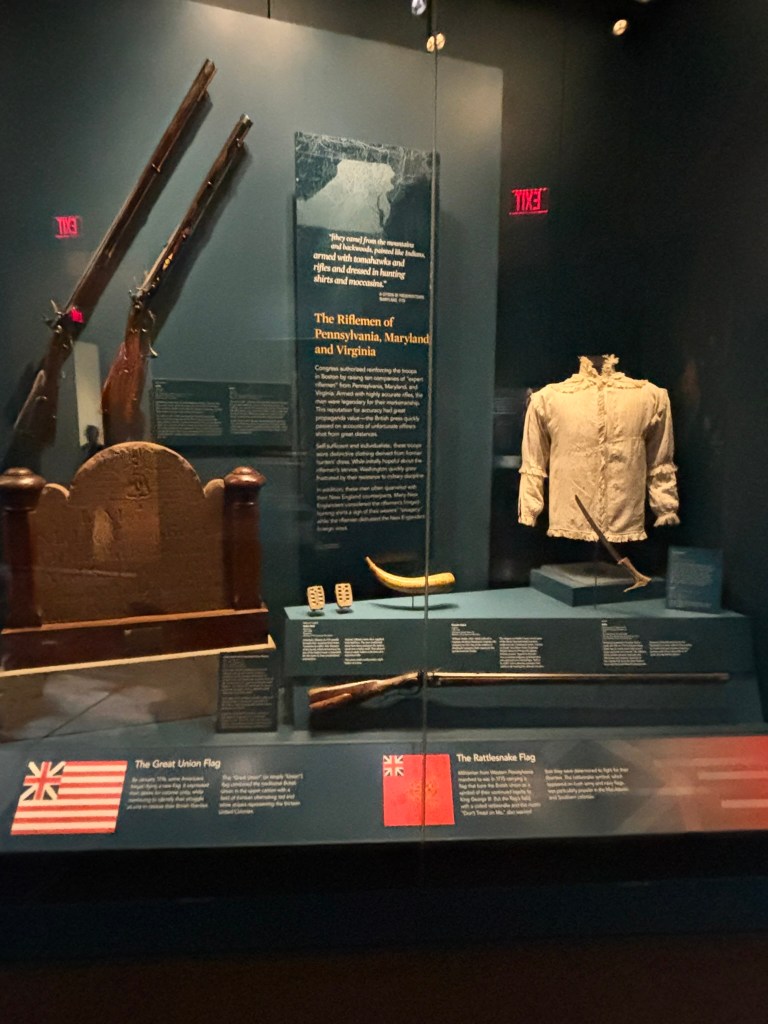 Our first stop when we arrived in Phili was the Museum of the American Revolution, which was my first visit there. The special exhibit that opened the day before we arrived is “Witness to History: The Unlikely Travels of Washington’s Tent.” In my blog post from July 2023, (visit here) my family and I visited Morristown, NJ to see a replica of Washington’s War Tent, and explore inside. The real, authentic tent is located at the Museum of the American Revolution, and we were able to see it there (the museum did not allow photographs of the tent, but photos can be found here.) The new exhibit highlights the roughly 250 year journey of Washington’s War Tent as it has passed through the generations and miraculously has survived through not-so-delicate hands to make it to the museum in Philadelphia. The tent highlights Washington’s commitment to be among his troops and live in similar conditions as them. Washington was a leader that his troops could relate to and respect. He did not want to appear as an elitist or authoritarian. His living quarters were far different from what other European leaders, such as Napoleon, were living in while on campaign. Before viewing the real tent, you are shown a short video about the Revolution and the journey of the tent through the ages. The survival of the tent represents the survival of our fragile, delicate and at-times challenged republic.