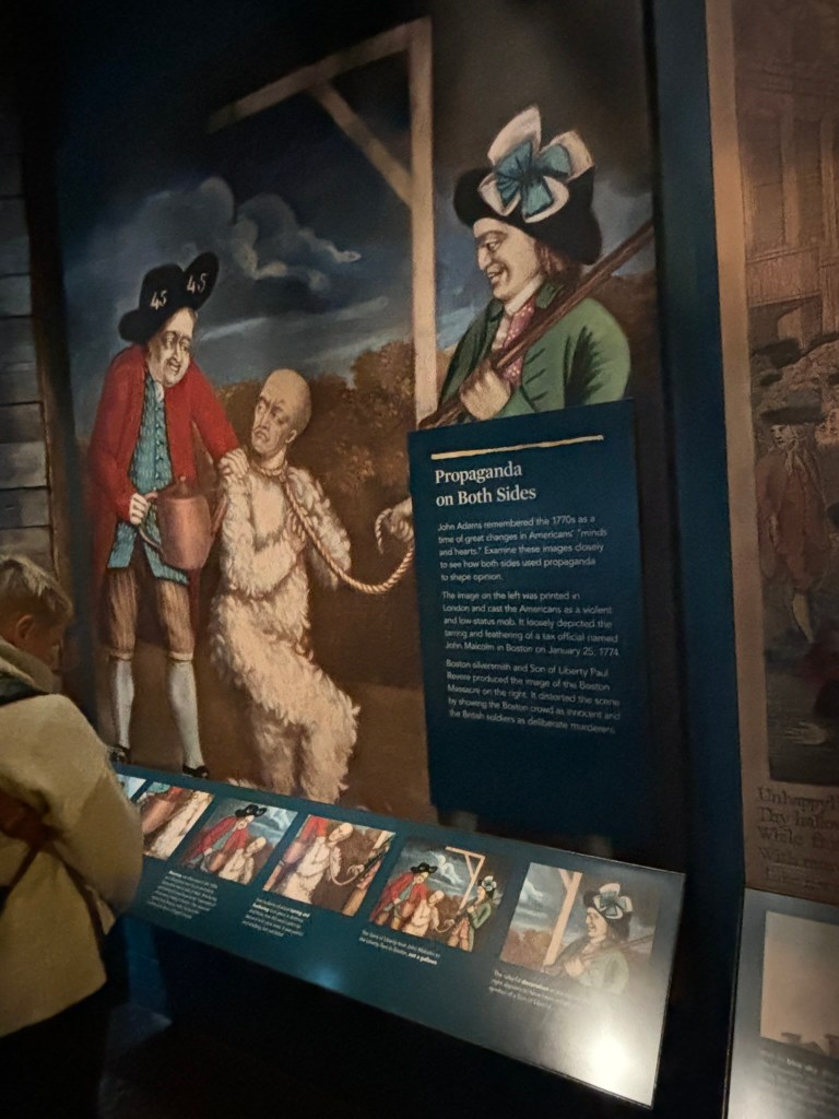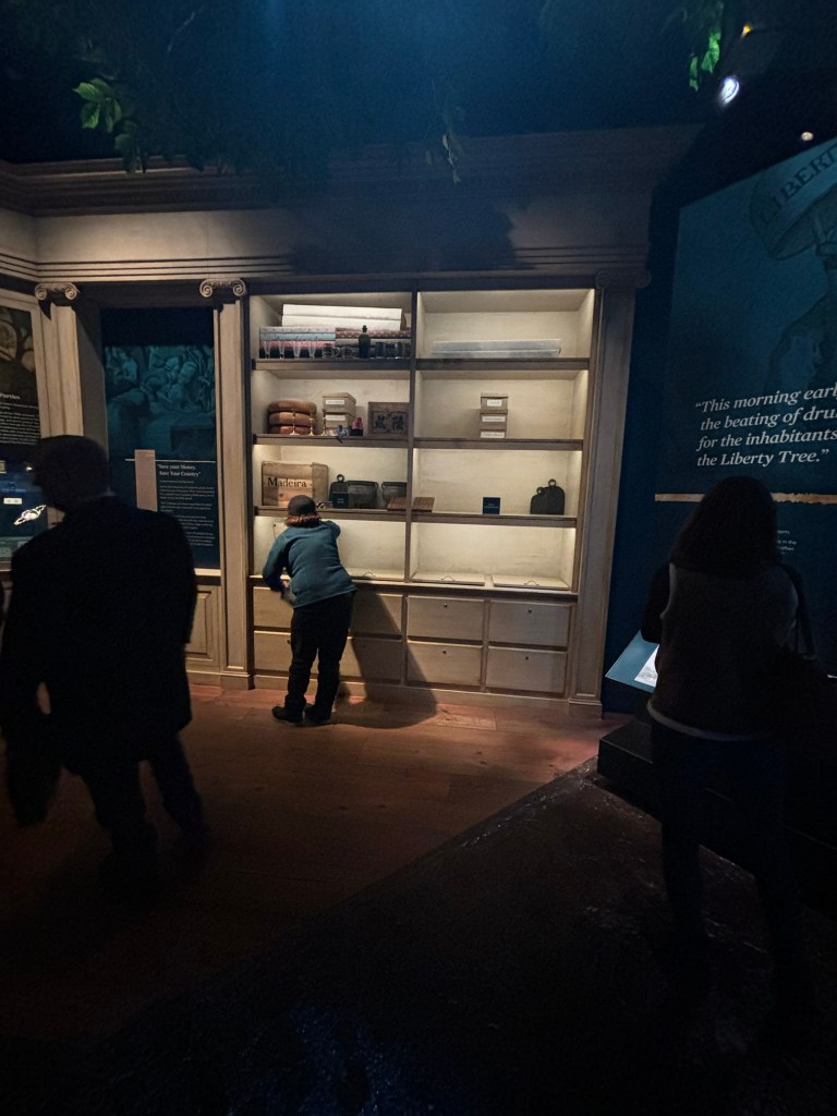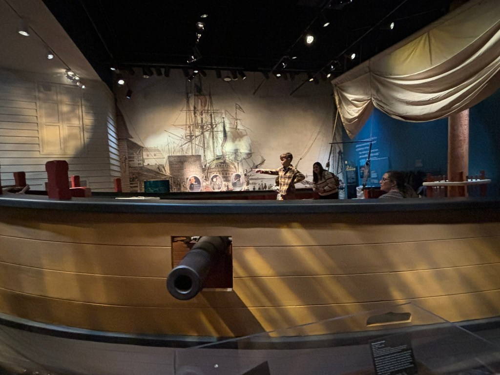 After we saw the tent and explored the special exhibit about the history of the tent, we journeyed through the rest of the museum. The main exhibit immerses you in the events of the Revolution, from the French and Indian war, the British taxes, the protests by the colonists, the opening shots at Lexington and Concord, the key events that transpired throughout the war, and the writing of the Constitution. The exhibit teaches through informative plaques, hands-on learning, videos and artifacts. It truly is a remarkable museum that everyone needs to visit. In the basement floor there is also an activity center for kids with hands-on and interactive exhibits. After our time spent at the museum, we head to lunch.