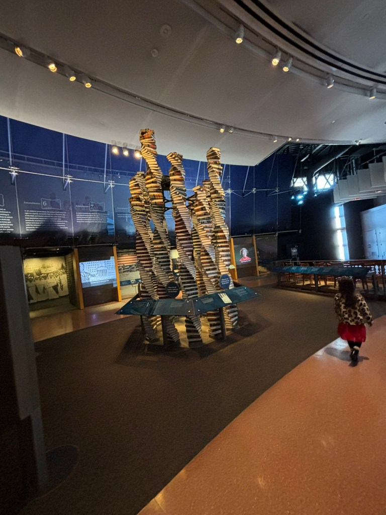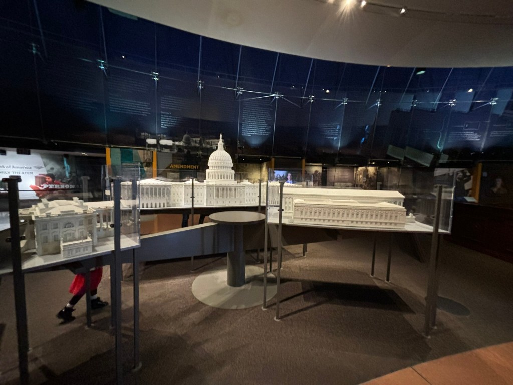 Our visit to the Constitution Center was also a first time visit. We first went to the theater and saw a show which was truly inspiring. The show highlighted, through spoken word and video, the great challenges that the founding fathers had to overcome just to get together and create a brand new government in an age of monarchies and absolute power. The show also went into the challenges that the country has faced since the Constitution was written and the amendments added to remedy these challenges. The show highlighted the fact that we have a government that is not led by a concentration of power in a person or a dynasty. It is led by us, the American people. Leaving inspired, we went to other exhibits throughout the Constitution Center which highlighted the first amendment, as well as exhibits on our three branches of government.