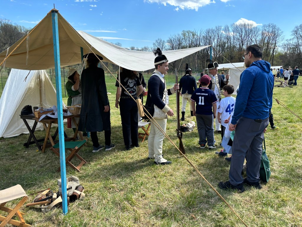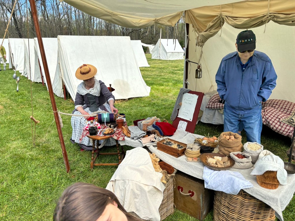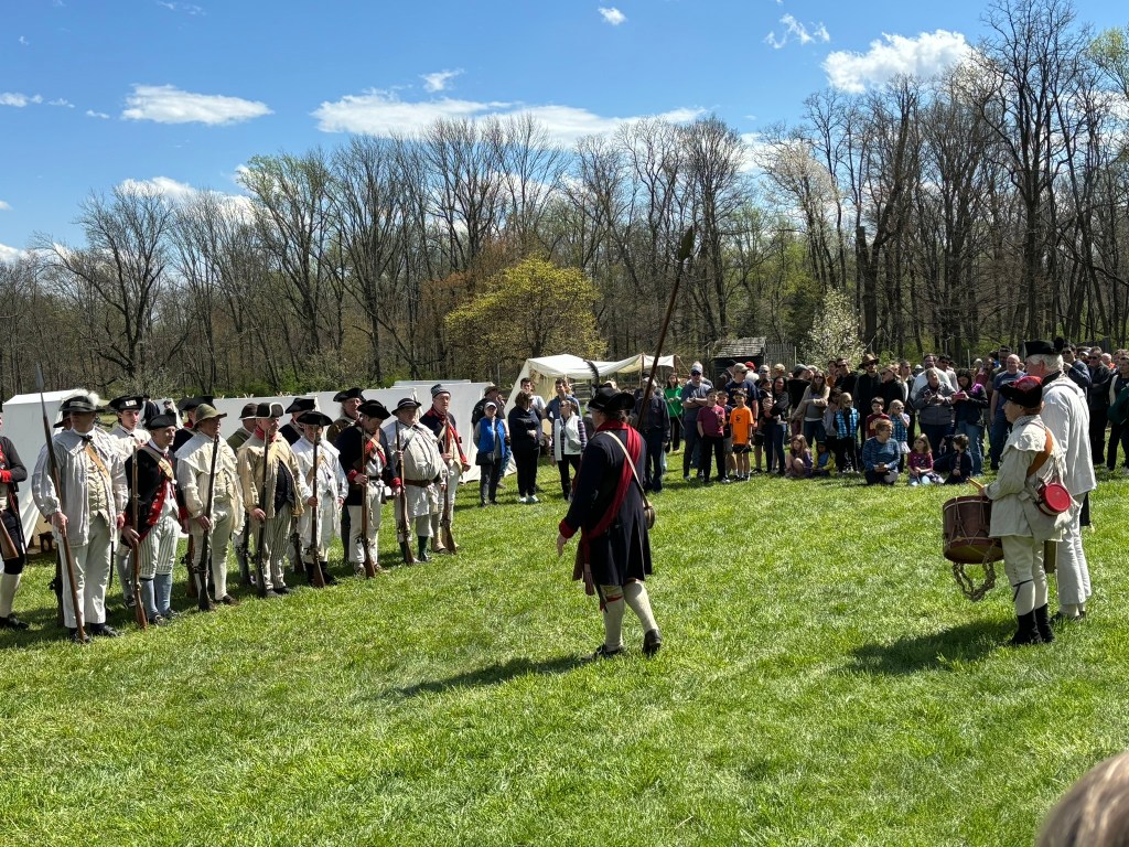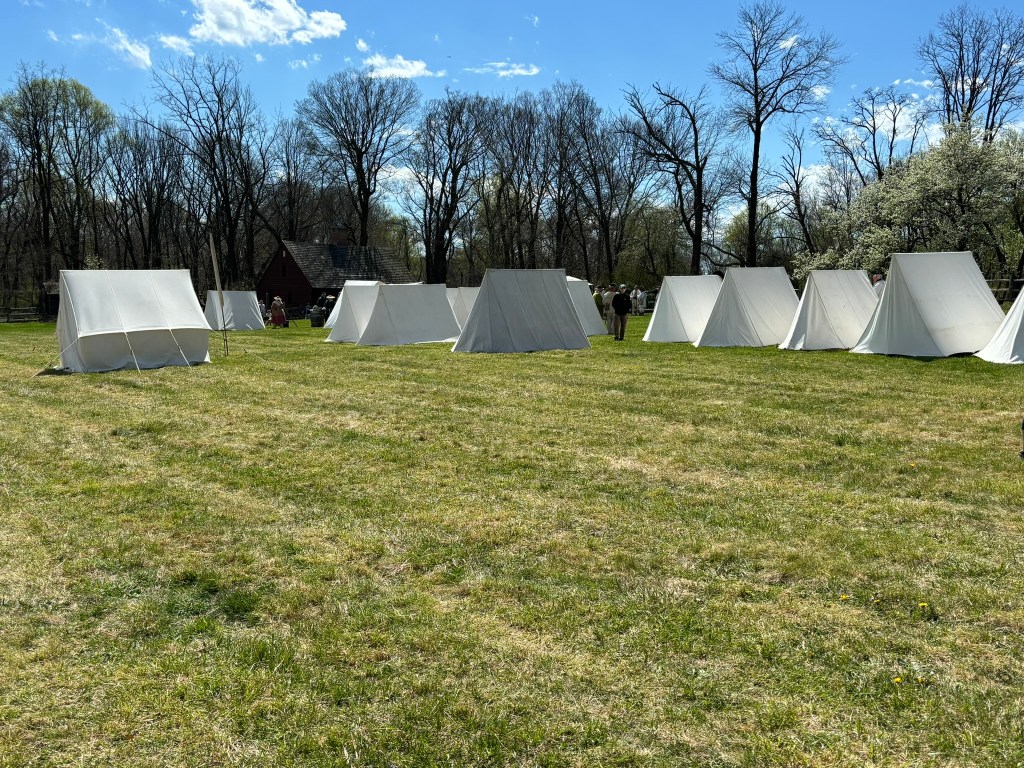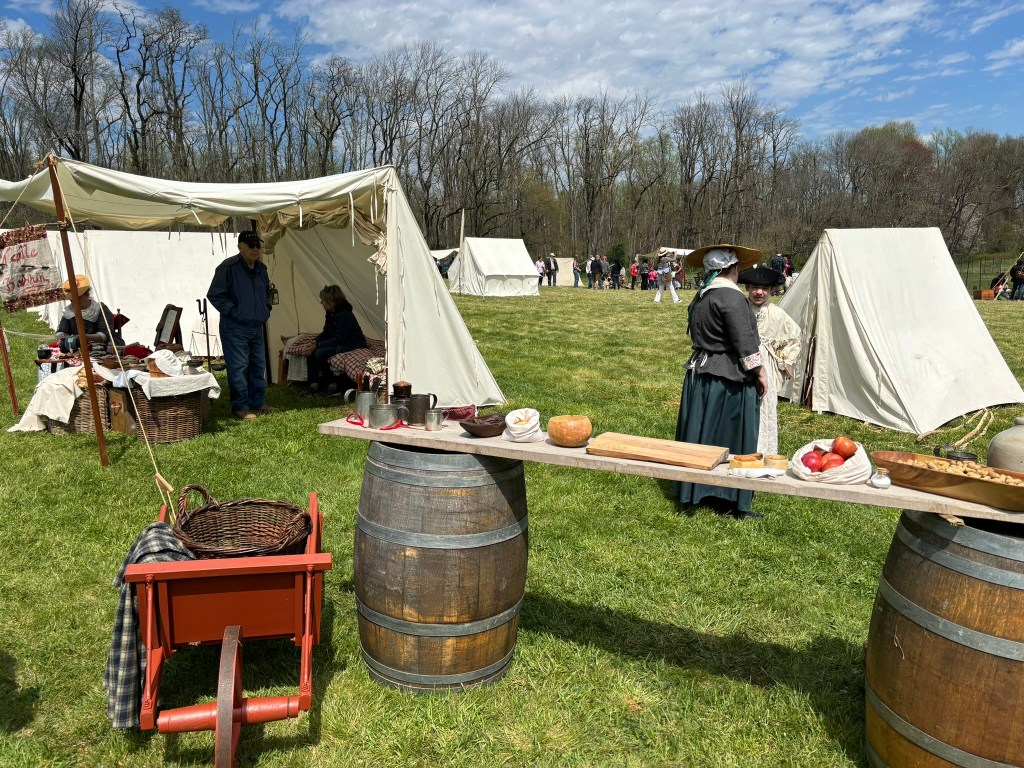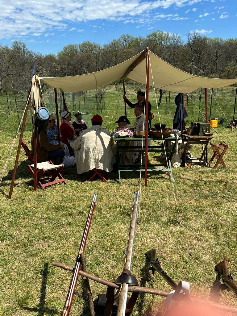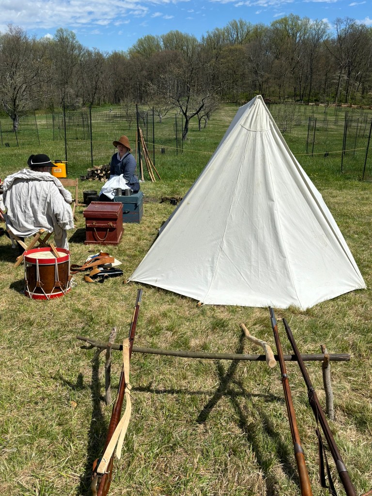 My family made it out to the Spring Encampment at Jockey Hollow which is running April 20th and 21st at the Jockey Hollow encampment site in Morris County. Jockey Hollow served as the winter quarters for the Continental Army during the harsh winter of 1779-1780, as well as later times throughout the war. Henry Wick’s farm was 1400 acres and was used by an army of about 10,000 who proceeded to build a “log house city.” The army cleared out an expanse of forest to build their log huts. George Washington’s headquarters was about 6 miles away at Ford Mansion in Morristown.