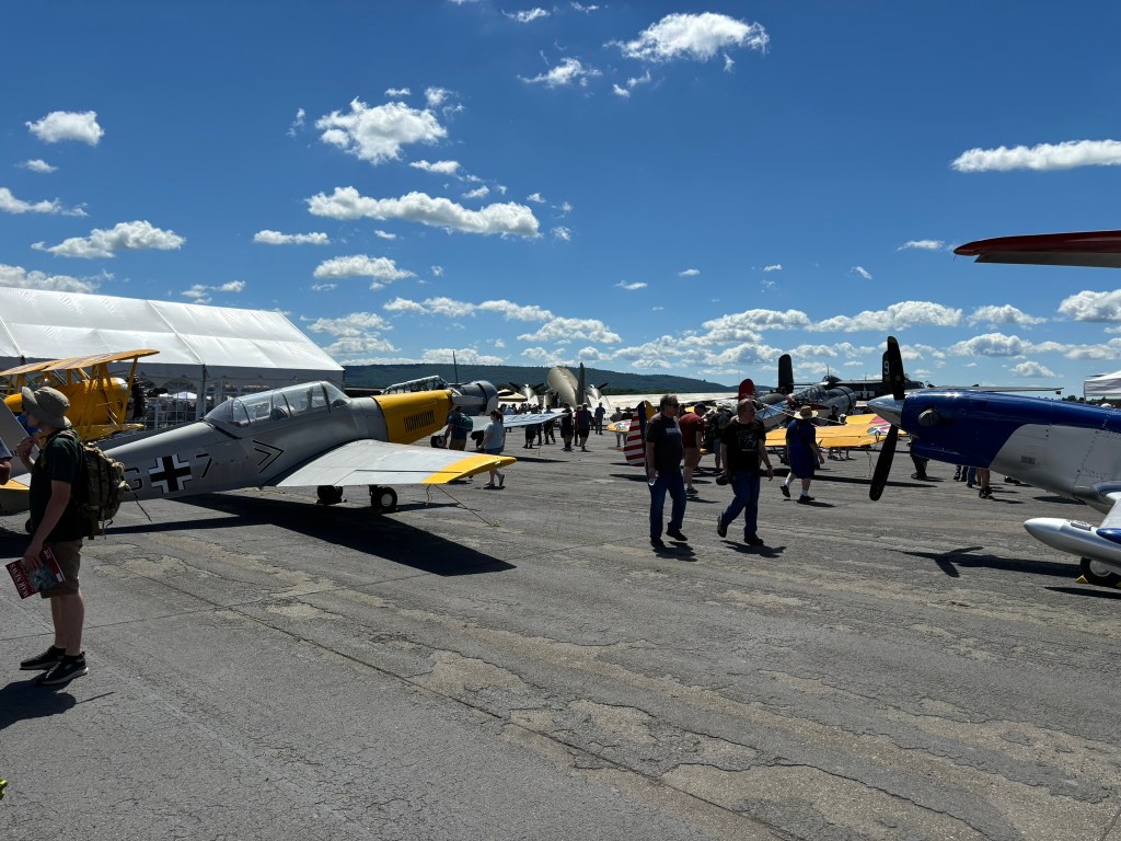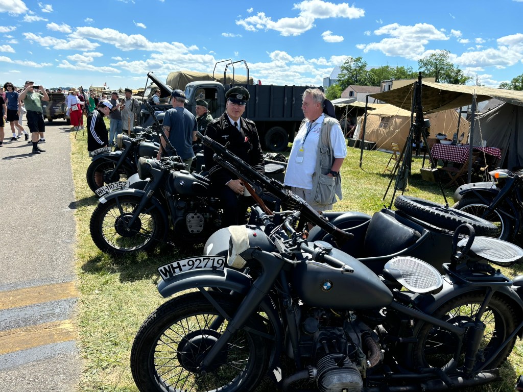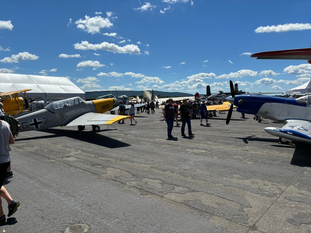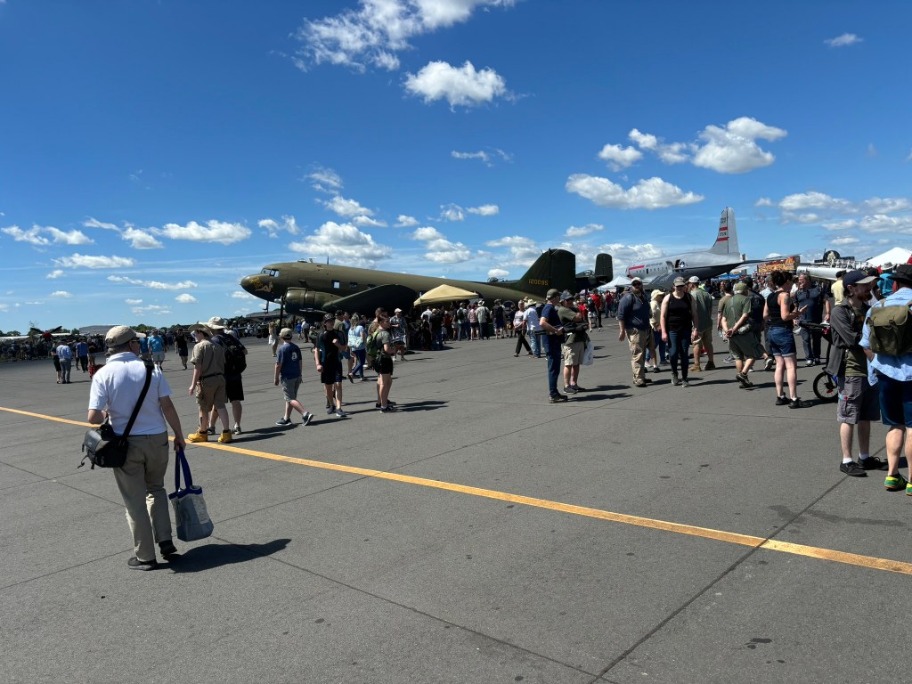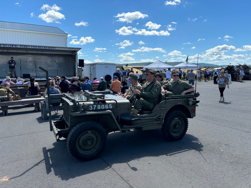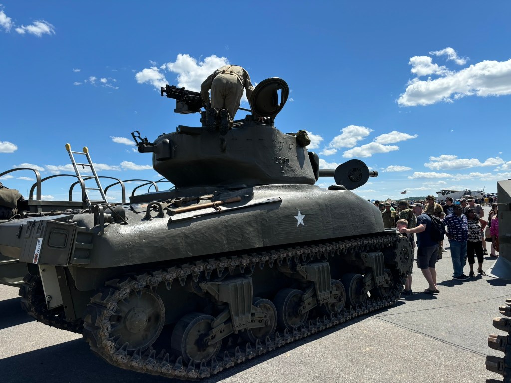 My dad and I made the 2 hour drive and arrived at the parking site at about 10:15am. Right away, we could tell that there were many more people attending this event than last year. It was a beautiful day, and this year celebrated the 80th anniversary of D-Day which drew many people. The lines to catch a shuttle bus to the event were quite long, although they did move pretty quickly. I assume that the organizers of the event didn’t even assume the number of people who would be there. But I have to give them credit for how well organized everything is run there.