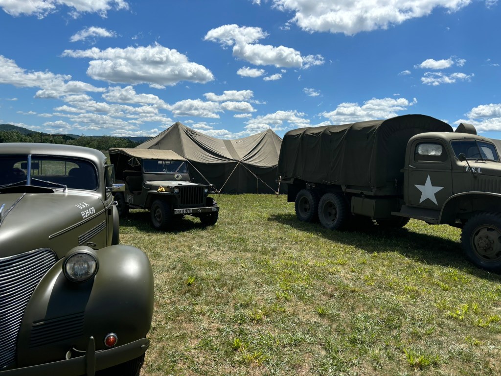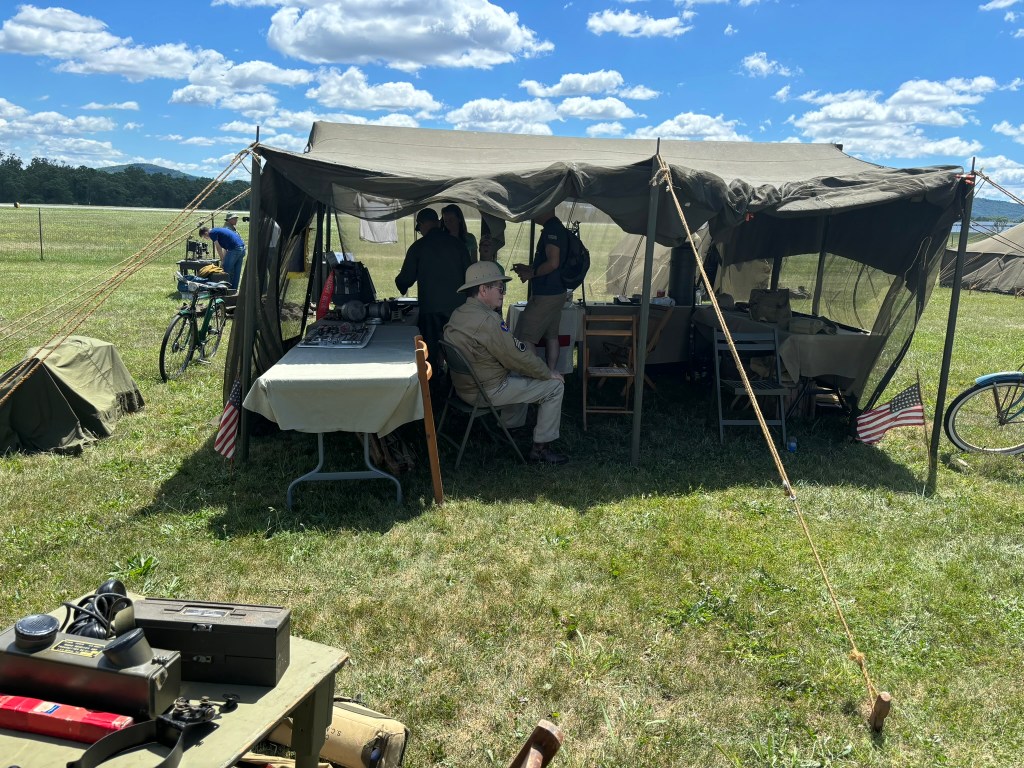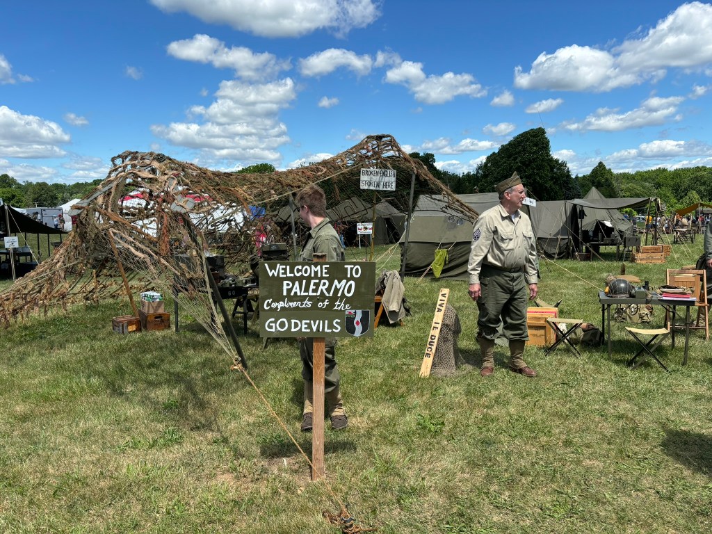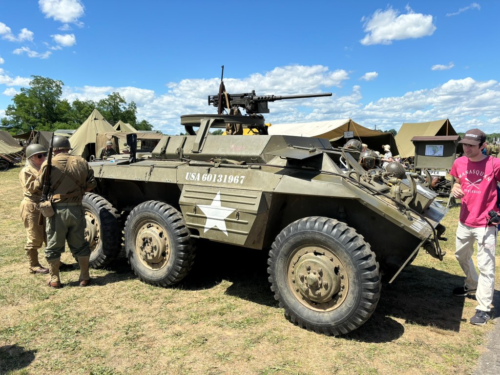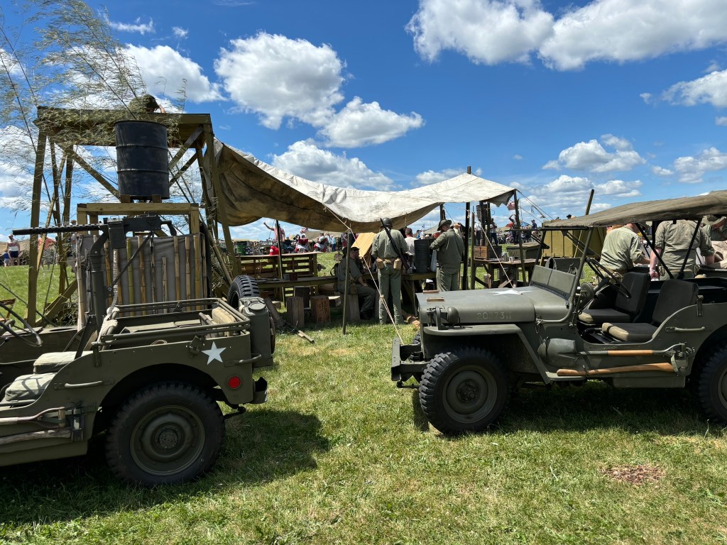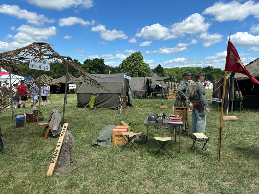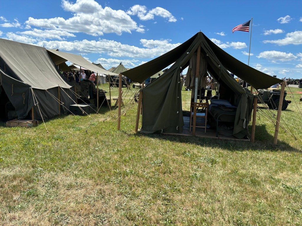 When my dad and I finally made it to the event, we toured the many encampments and checked out all of the WW2 planes. We checked out a small French village, and we viewed WW2 soldiers drilling in line. We saw medics care for two wounded soldiers. We examined the many tanks and army vehicles. The grounds have speakers that play tunes from the 1940s. You truly feel like you’ve stepped into a time machine and are now in a WW2 camp. There are so many reenactors who are in the army camps, and they are very knowledgeable about their subject. One particular re-enactor explained to us how WW2 soldiers used bazookas against enemy tanks. He also explained how jumpers from planes had to safely jump and land holding all of their equipment.