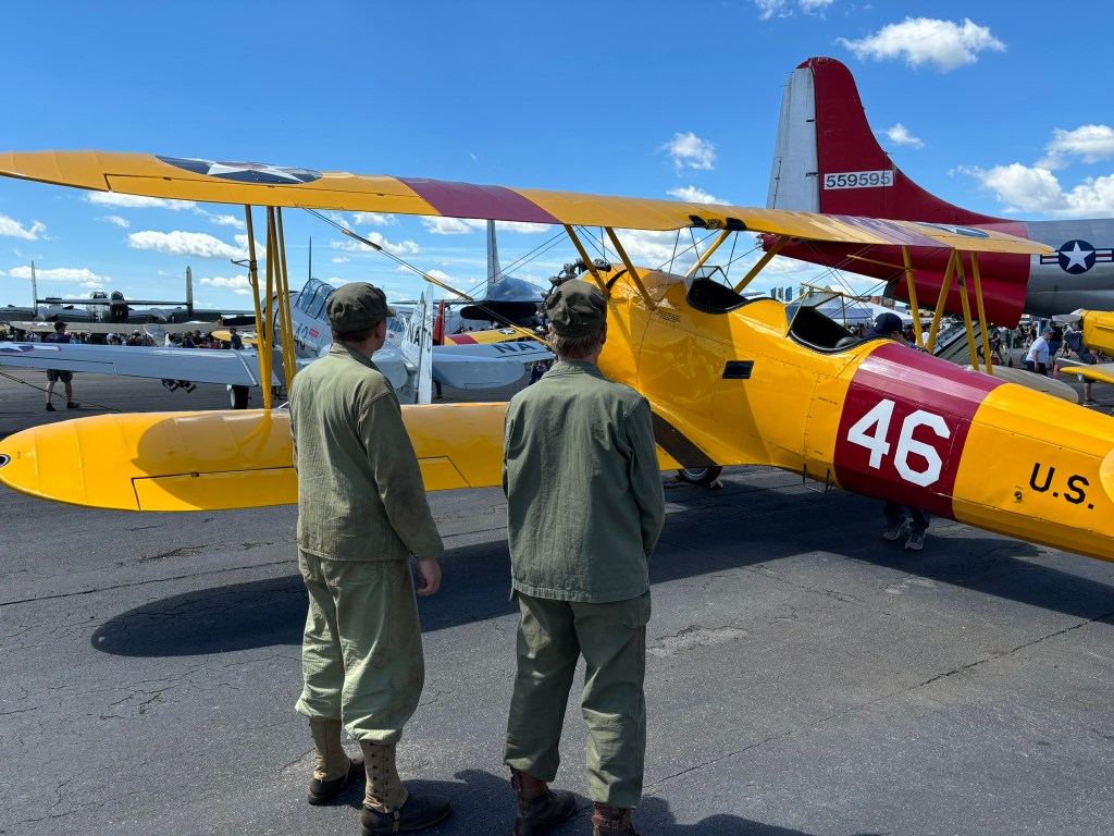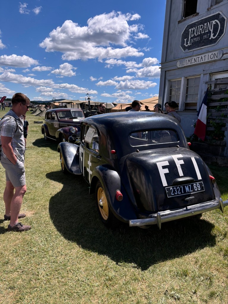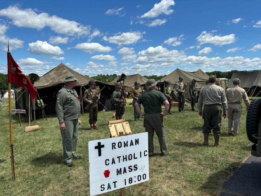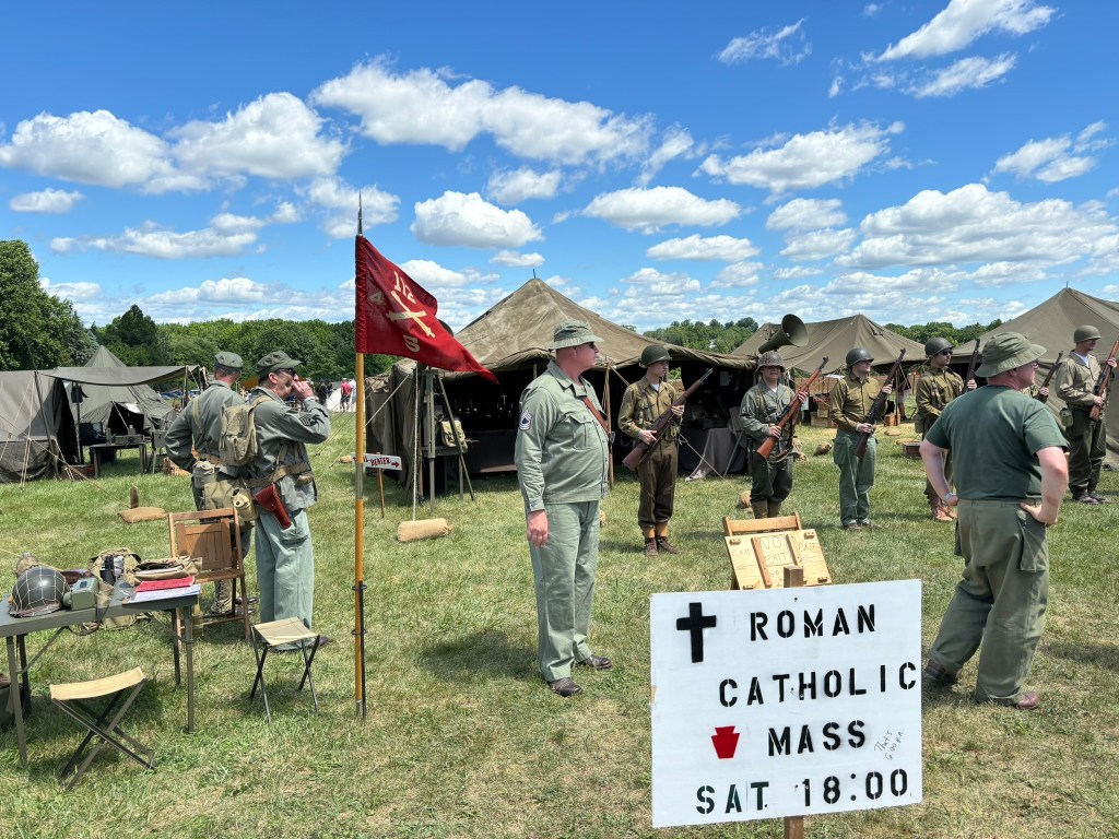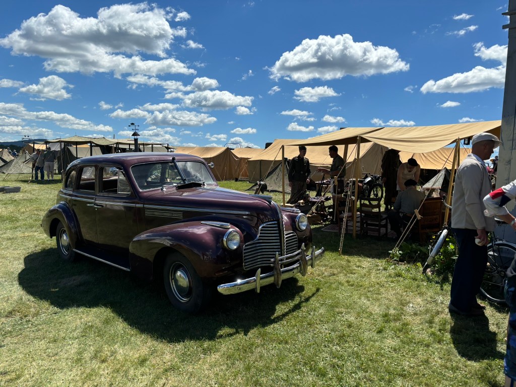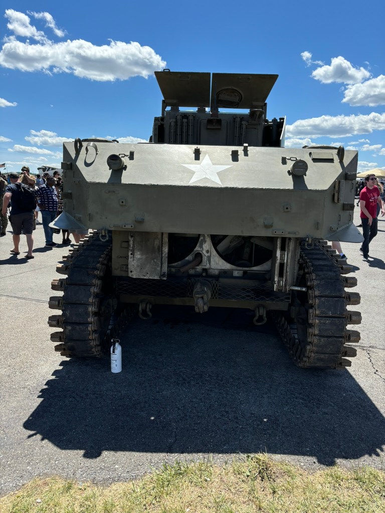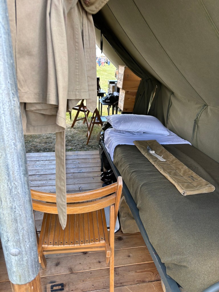 When my dad and I finally made it to the event, we toured the many encampments and checked out all of the WW2 planes. We checked out a small French village, and we viewed WW2 soldiers drilling in line. We saw medics care for two wounded soldiers. We examined the many tanks and army vehicles. The grounds have speakers that play tunes from the 1940s. You truly feel like you’ve stepped into a time machine and are now in a WW2 camp. There are so many reenactors who are in the army camps, and they are very knowledgeable about their subject. One particular re-enactor explained to us how WW2 soldiers used bazookas against enemy tanks. He also explained how jumpers from planes had to safely jump and land holding all of their equipment.