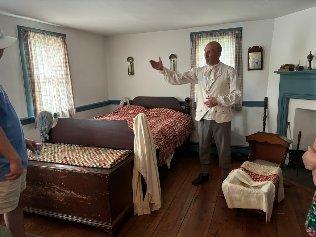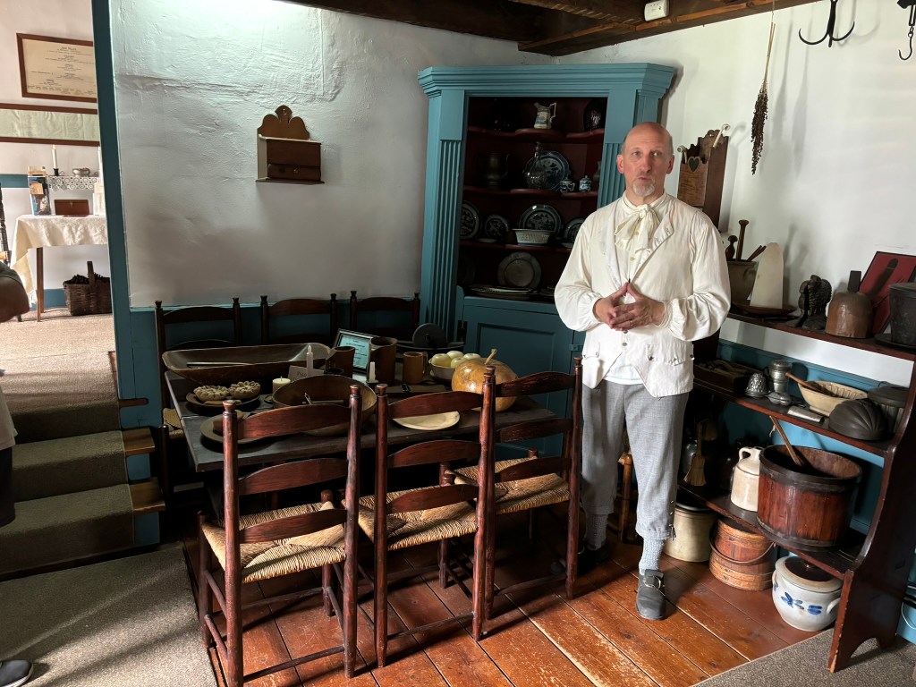 Through Robert, I learned much about the Miller-Cory house, as well as the general area’s role before, during, and after the American Revolution. In 1740, Samuel Miller built the farmhouse and lived there with his wife and children. The property once sat on 110 acres of land. What is now Mountain Ave. in Westfield, which passes by the front of the house, was a Lenni Lenape trail and route along the Washington-Rochambeau Revolutionary Route. The House was sold to Joseph Cory in 1784 and remained in the Cory family until the 1900s. In 1972, the Westfield Historical society raised funds in order to purchase and preserve the house. Through preservation, the house was returned to its earliest, colonial form and was furnished with colonial era artifacts. It currently serves as a living history museum.