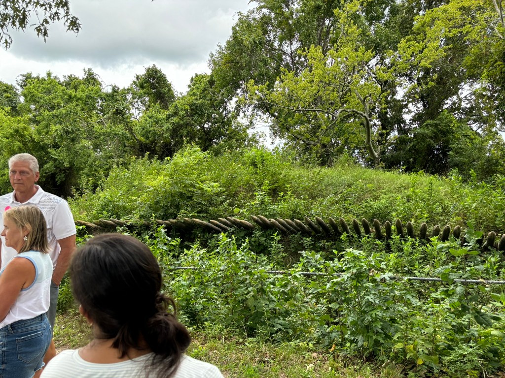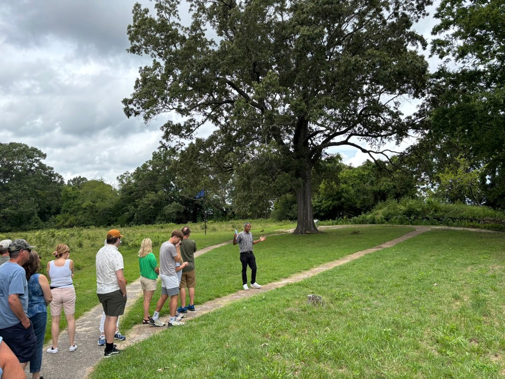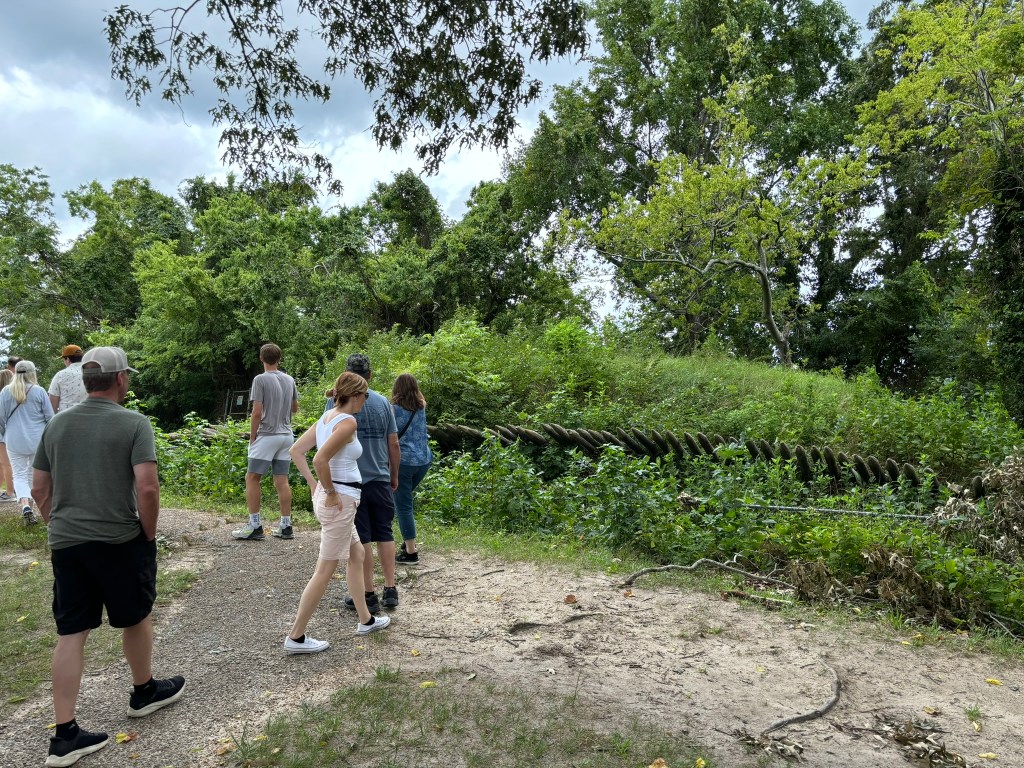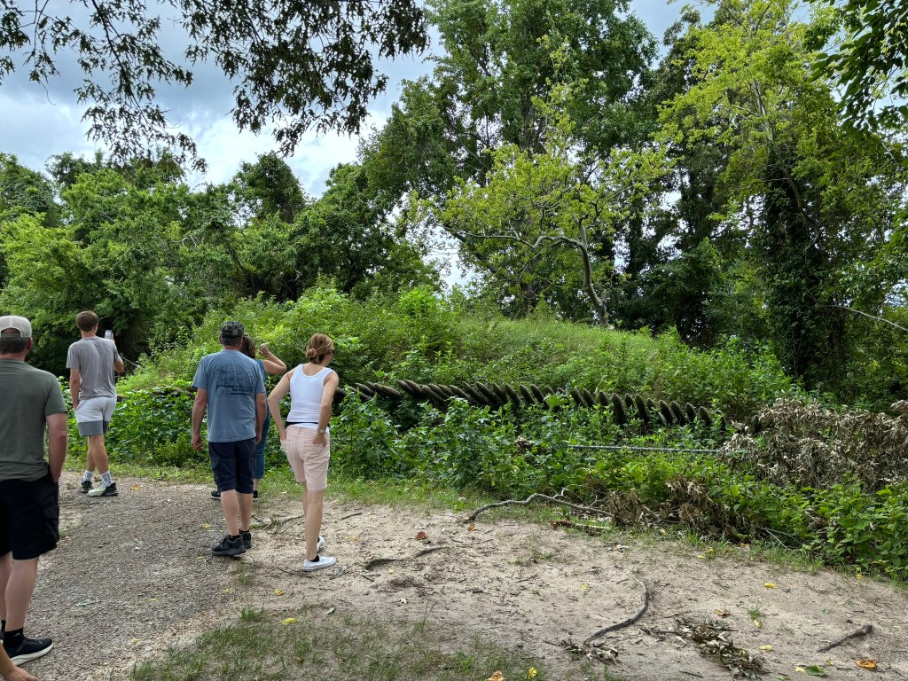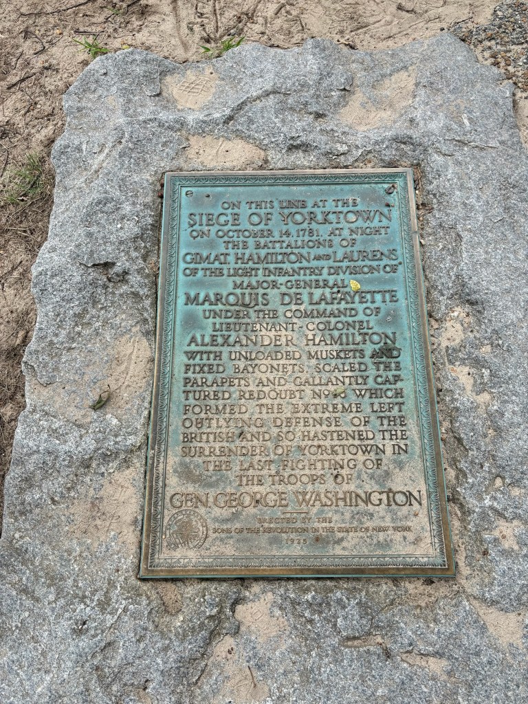 The bus made its way to Redouts # 9 and #10. These were two smaller fortifications just outside the British inner defenses, designed by the British to defend against French and American forces. When we arrived at the redoubts, we got out of the bus to observe Redoubt #10. Our tour guide explained the significance of the Redoubt. By October 14th, the American and French trench lines were within 150 yards of these two Redoubts. Washington devised a plan in which the French would attack Redoubt #9 and the Americans would attack Redoubt #10. Alexander Hamilton was chosen to lead the offensive in the night against Redoubt #10. The soldiers charged the redoubt with no ammo, just bayonets drawn. This was in order to keep the element of surprise. The American soldiers stormed the redoubt, climbed the abatis, and successfully took Redoubt #10 in brutal hand-to-hand combat in just 10 minutes. The French were also successful in taking Redout #9. Truly a climactic moment of the siege, the British surrendered just 5 days later.