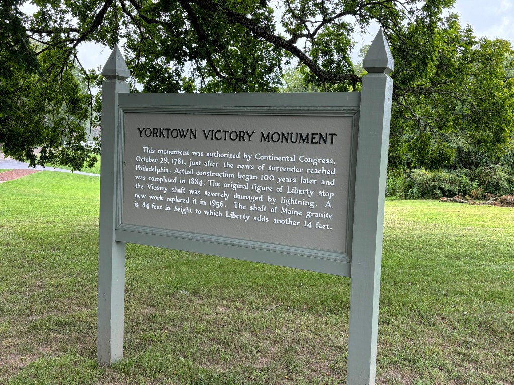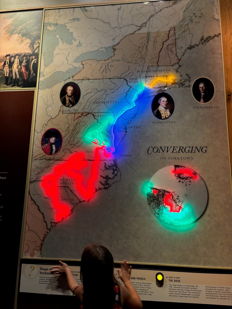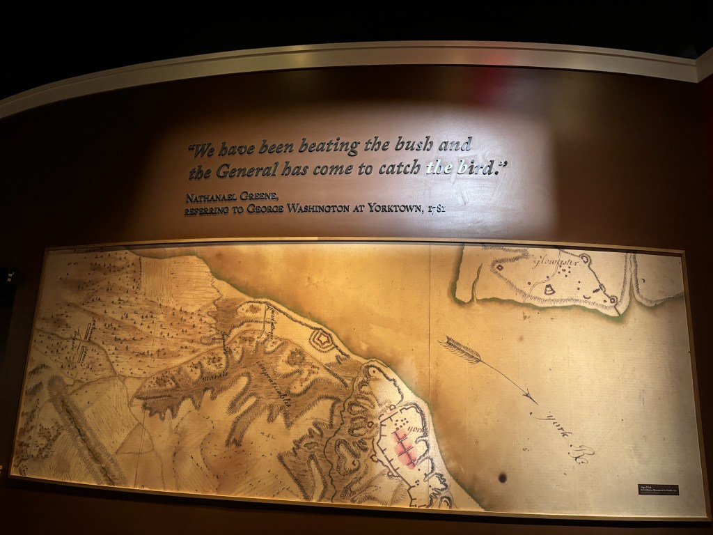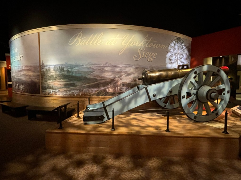 Having described the Washington-Rochambeau Revolutionary Route in previous posts, it was great to see the final destination of that route: Yorktown. I have also loved teaching about the Siege of Yorktown to my classes for so many years. It adds a brand new perspective when you go to the actual location where a great battle took place. I plan to bring my experiences into the classroom when I teach about Colonial America and the American Revolution again this fall. Yorktown was such a significant victory because the war had dragged on for six years up until that point. The Continental Army couldn’t afford to have it drag on much longer. The Declaration of Independence would mean nothing without an American victory in the war, and Yorktown was the victory that secured independence. Seeing the battlefield first-hand was a great experience, and I would highly recommend the museum as well.