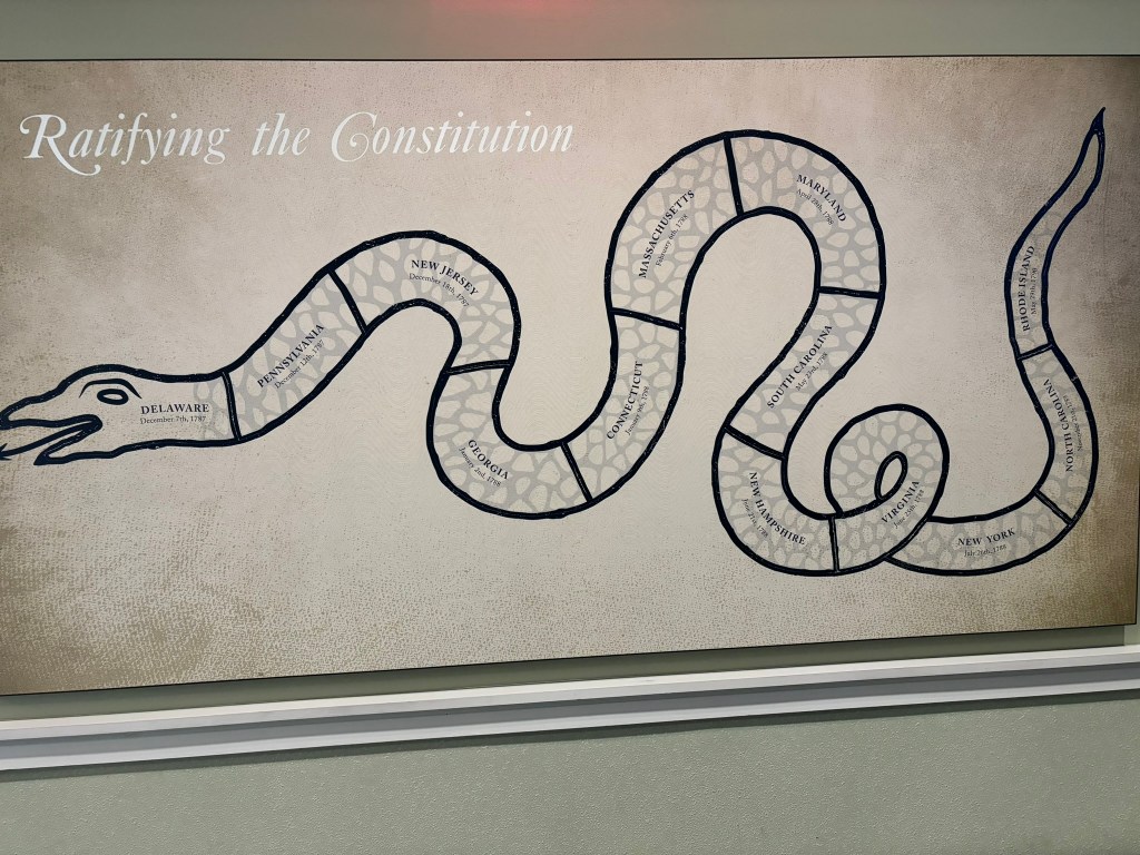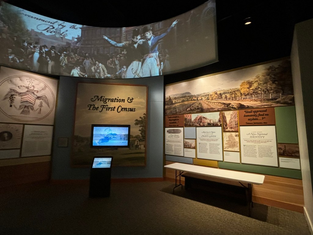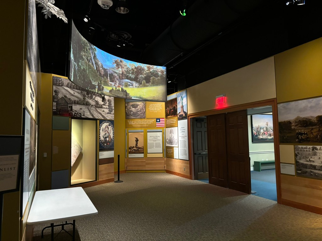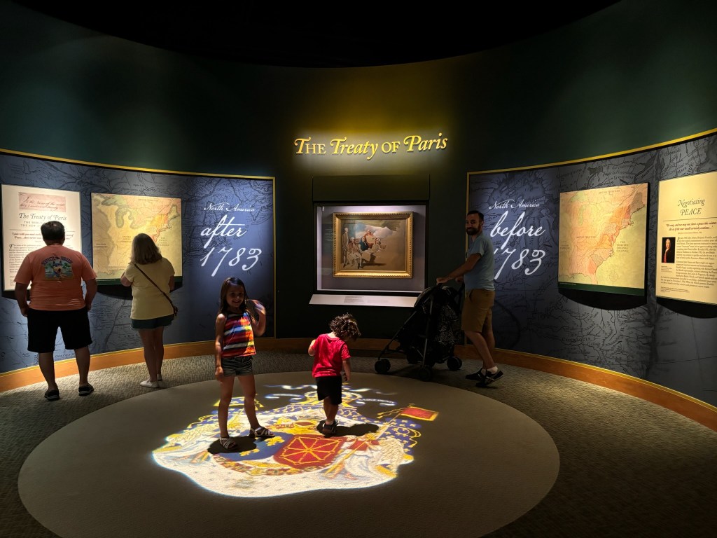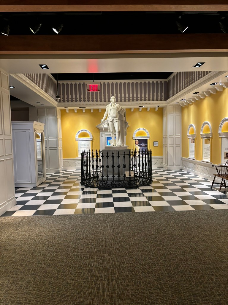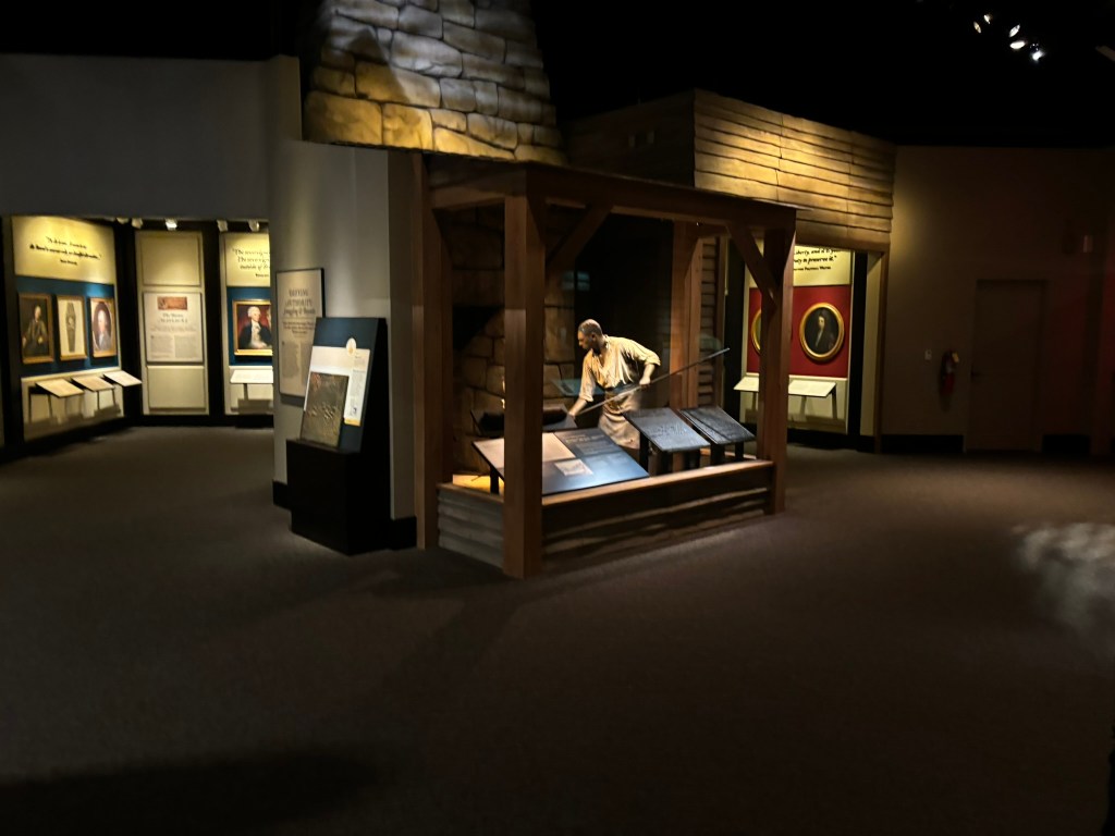 At this point in our tour, we had time to travel through the museum at our own pace. The museum takes you through the American Revolution chronologically, from the causes in the beginning of the museum, to the writing of the Constitution at the end. They had a great array of different types of displays including artifacts, primary sources, videos, and pictures that allowed the viewer to be immersed in the conflict.