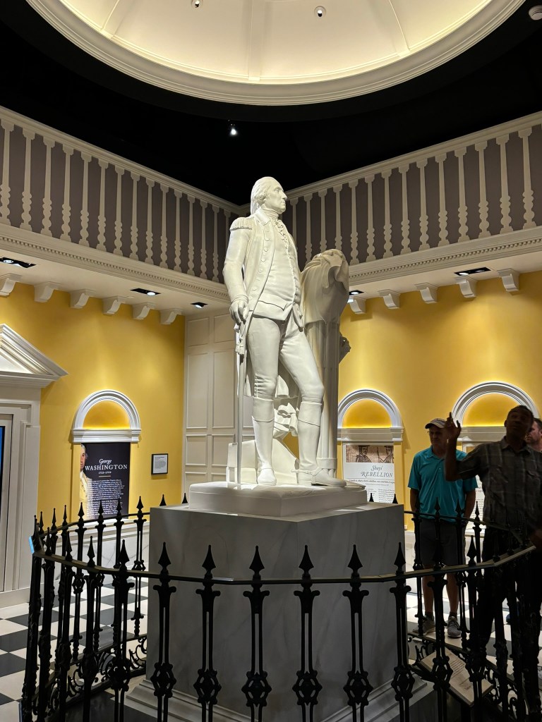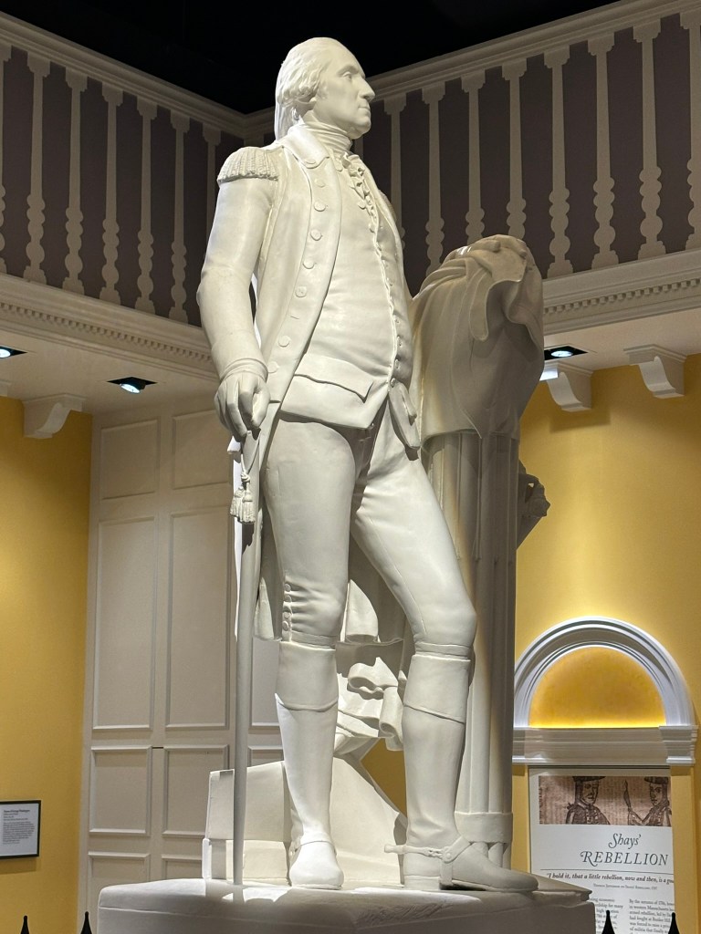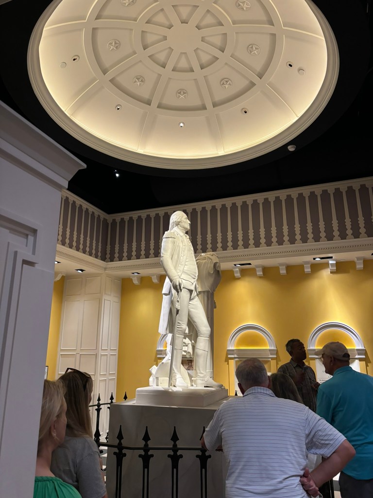 We made our way through town and then over to the American Revolution Museum at Yorktown, which is run by the Jamestown-Yorktown Foundation, as mentioned in my previous blog post about the Jamestown Settlement. Our tour guide first took us to a statue of George Washington, which formally was exhibited in the U.S. Capitol. We discussed different examples of symbolism within the statue.