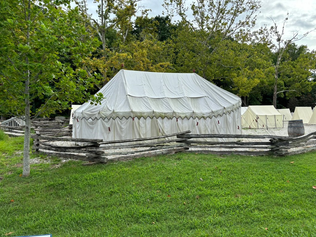 After we made our way through the museum, my family went outside to the living-history portion of the museum. Like we experienced in Colonial Williamsburg and Jamestown, the museum allowed us to go back in time and experience first-hand, what life was like in the late 18th century. First, there was a Continental Army encampment that we walked through.
