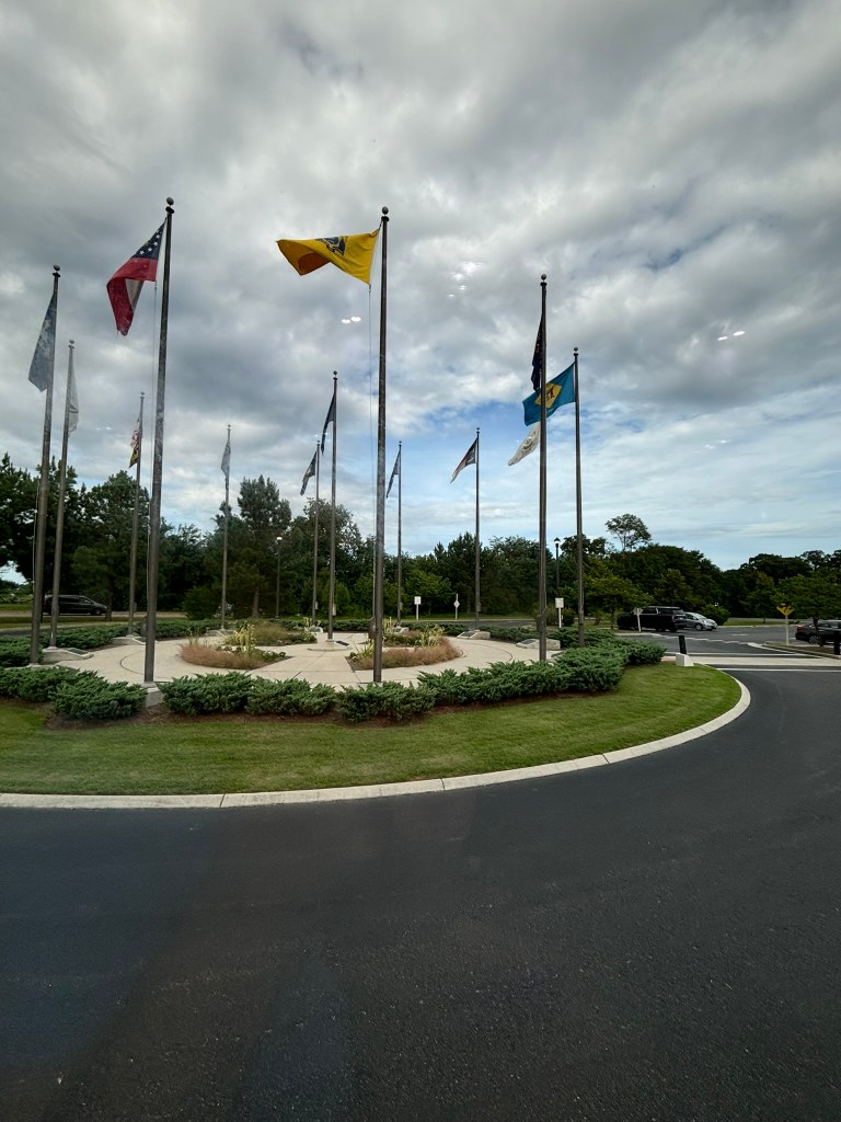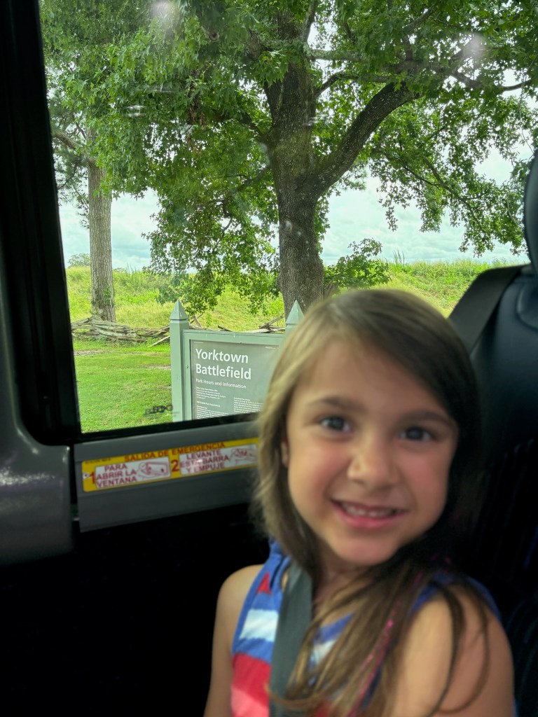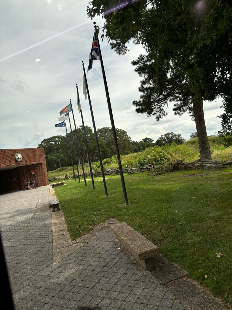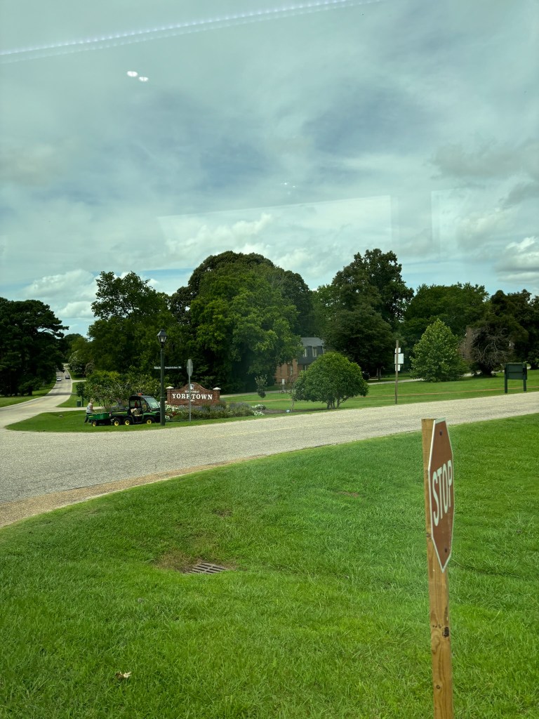 After we ate lunch at the Jamestown Settlement, we got back on the bus and headed to the Yorktown Battlefield. The drive between Jamestown and Yorktown was about 30 mins. Along the route, our tour guide still discussed the impact of the Jamestown settlement, and then transitioned into the 1700s. He explained the lead-up to the American Revolution and the outbreak of the war.