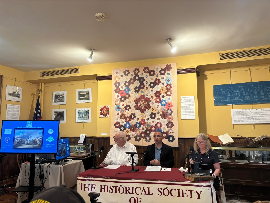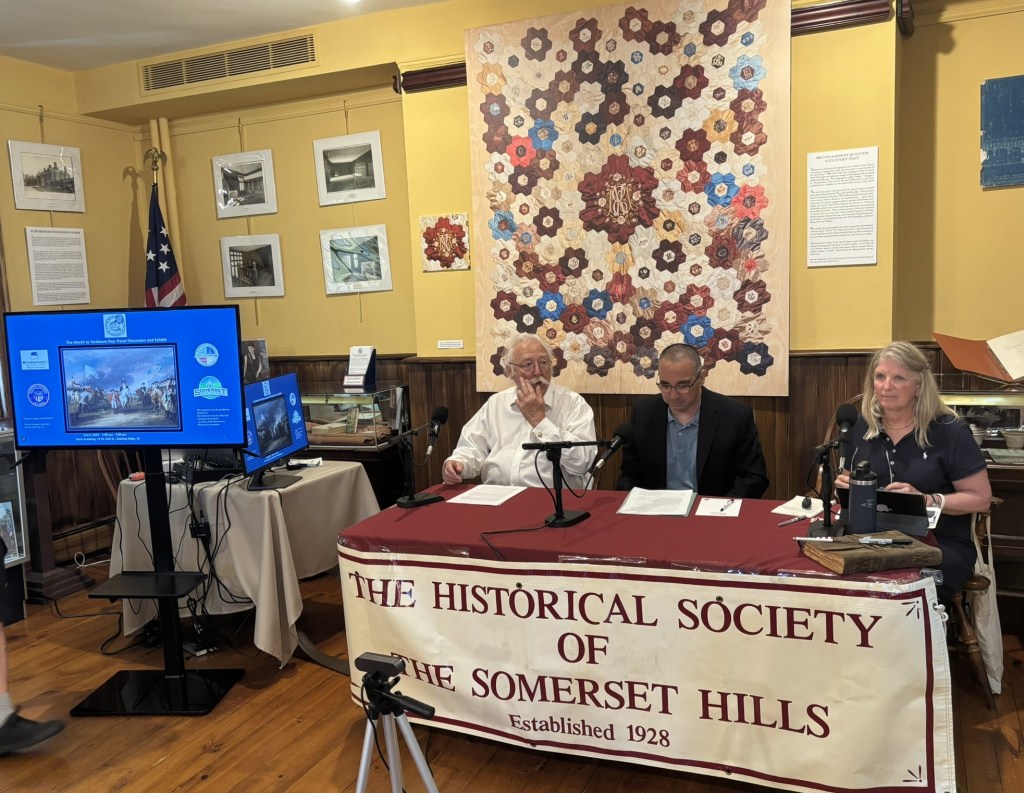 On July 6th, I had the privilege of attending “March to Yorktown: Panel Discussion & Exhibit,” an event hosted by the Historical Society of the Somerset Hills at the Brick Academy in Basking Ridge, NJ. This was my first time attending one of the Society’s events, and it proved to be both informative and engaging. The panel discussion highlighted the Washington-Rochambeau Revolutionary Trail and its lasting impact on the local community.  You can read my earlier blog post on the importance of the trail [HERE]. Notably, the French branch of the route passed directly through Basking Ridge, making it a key “route town” on the March To Yorktown. In addition to exploring the Trail, the panel emphasized the broader significance of the 1778 American-French alliance during the Revolutionary War.