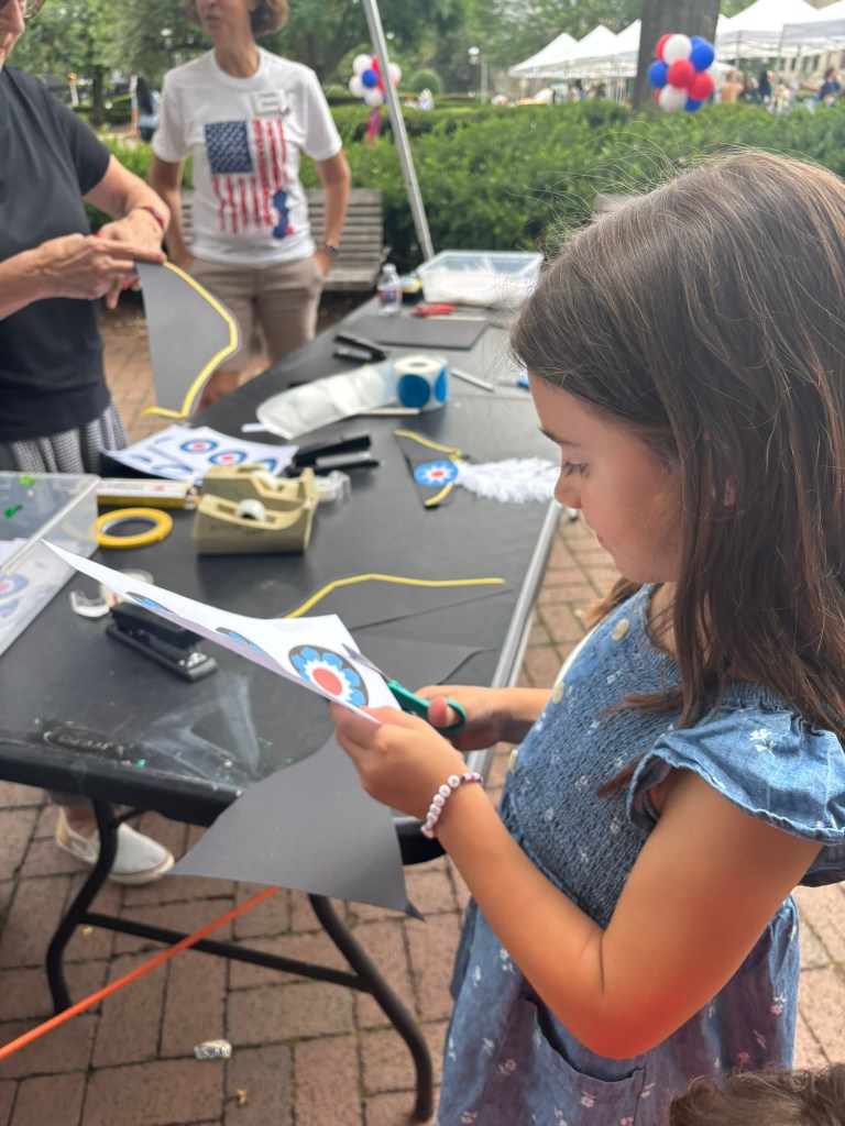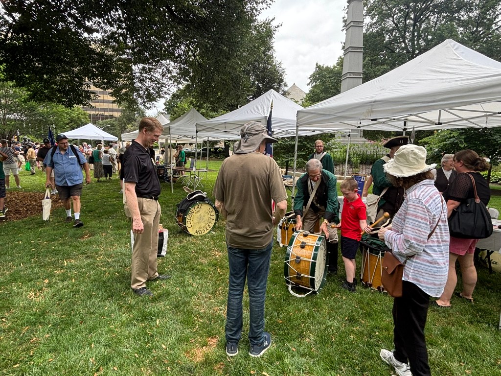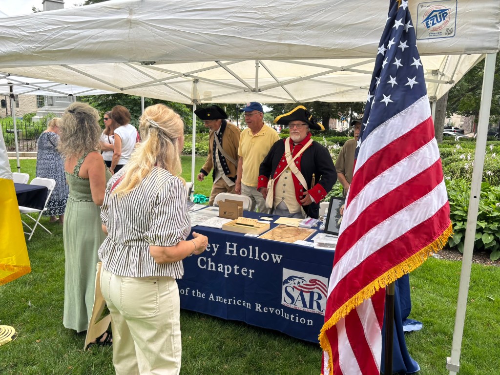 The event my family and I attended was organized by the American Friends of Lafayette in collaboration with the town of Morristown. When we arrived, we saw tents set up by local historical groups, including the Macculloch Hall Historical Museum, the Morristown National Historical Park, the Daughters of the American Revolution, the Sons of the American Revolution, and others. The event also featured exhibits, reenactors, and activities for families.