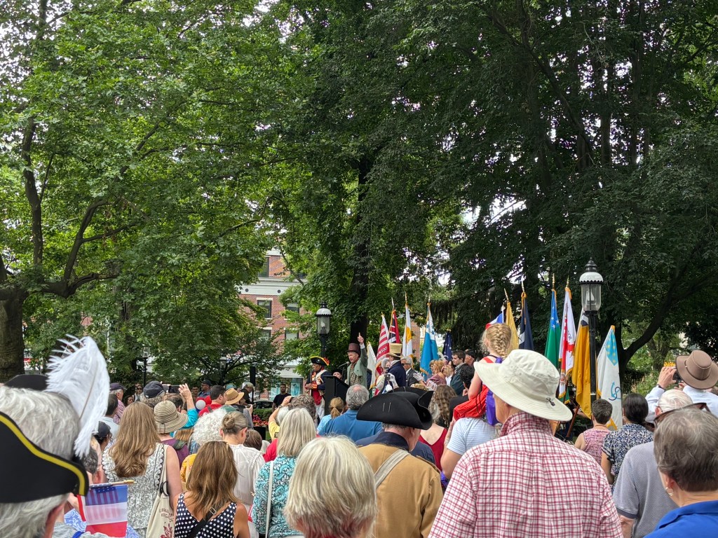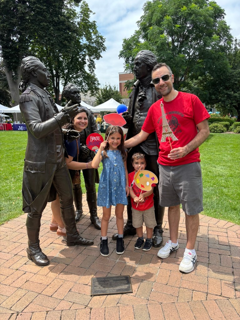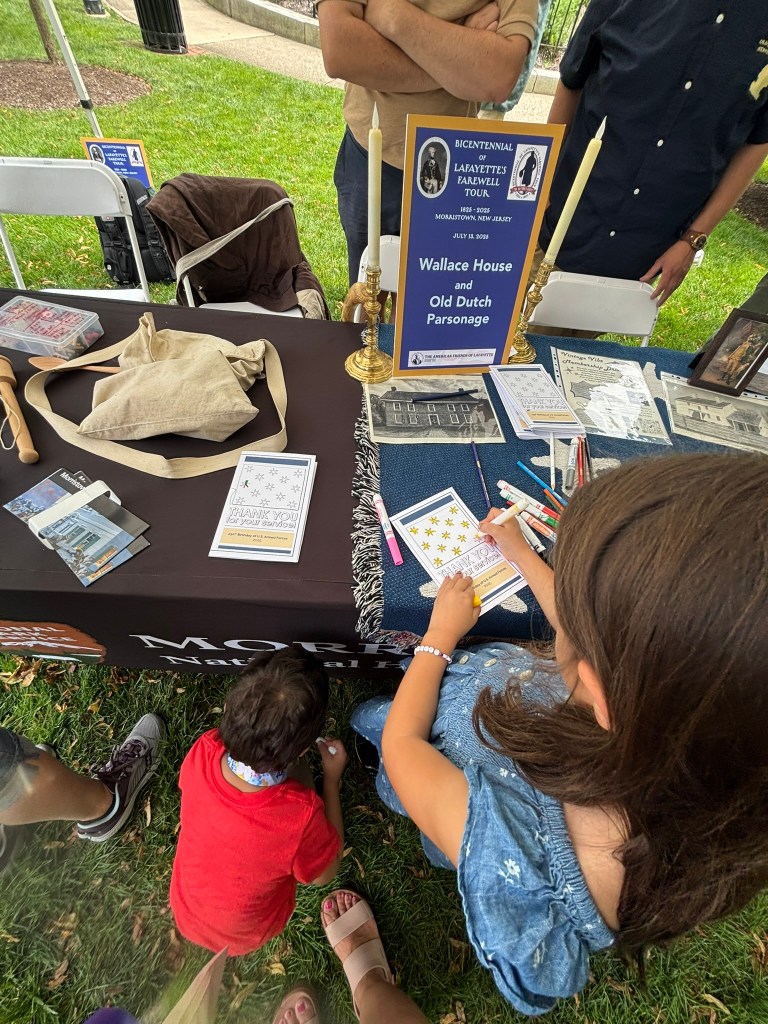 My family and I made it out to the Morristown Green in New Jersey on July 13th to celebrate the bicentennial of General Marquis de Lafayette’s visit to Morristown. In July 1825, Lafayette—the beloved French hero of the American Revolution—visited Morristown as part of his grand farewell tour of the United States. The tour, which came nearly 50 years after the country declared independence, brought Lafayette to towns and cities across the nation where he had once fought or held connections. In 1825, Morristown welcomed him with great fanfare, recalling his crucial role during the harsh winter encampments of the Revolutionary War. Crowds gathered in the town square, and a grand reception was held at Arnold’s Tavern—long a landmark of Morristown and closely tied to George Washington’s wartime presence in the area.