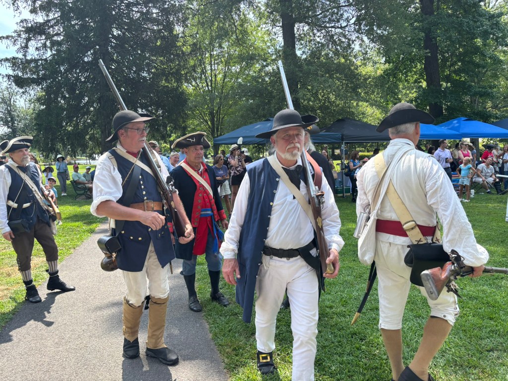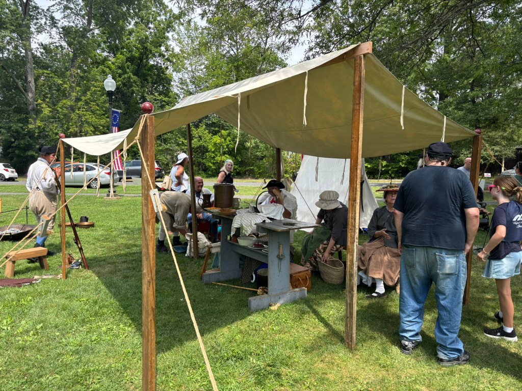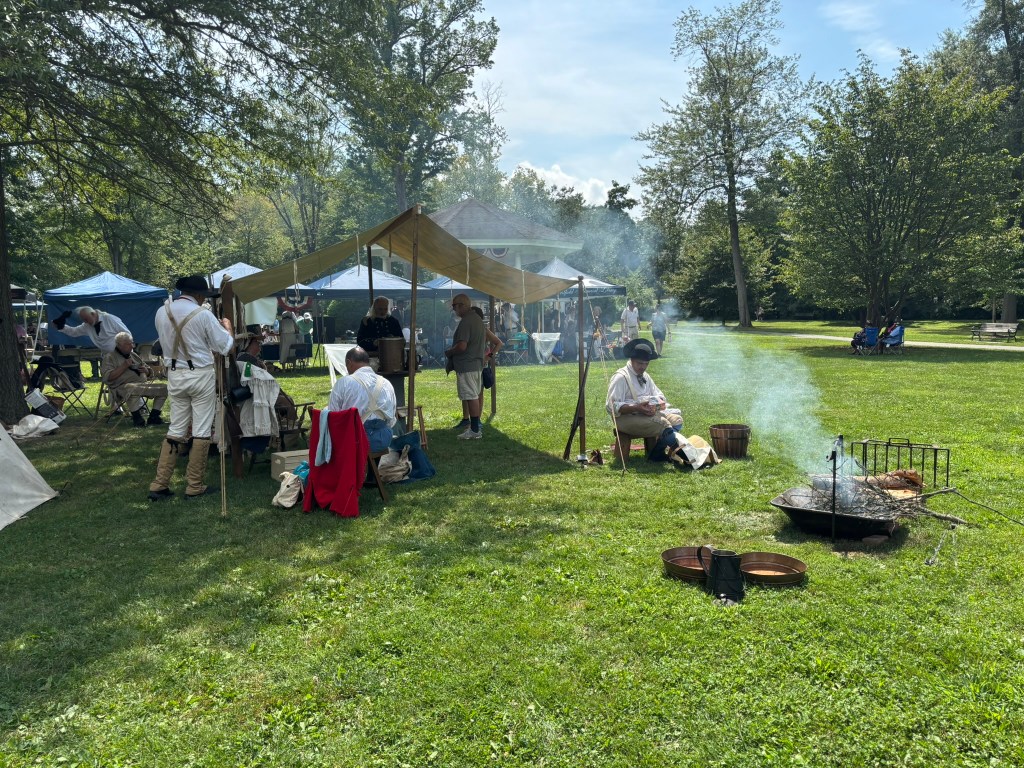 The grounds of Mindowaskin Park were transformed into a Revolutionary War encampment, complete with colonial-era games, open-fire cooking demonstrations, and regular drills, marches, and musket firing by soldiers in uniform.
