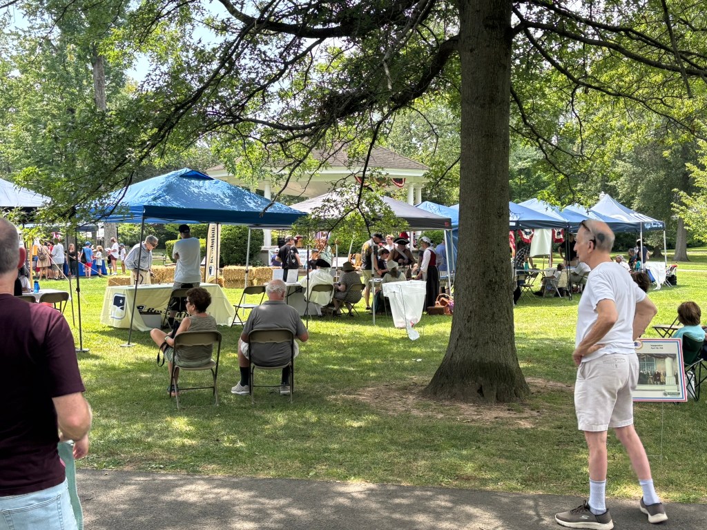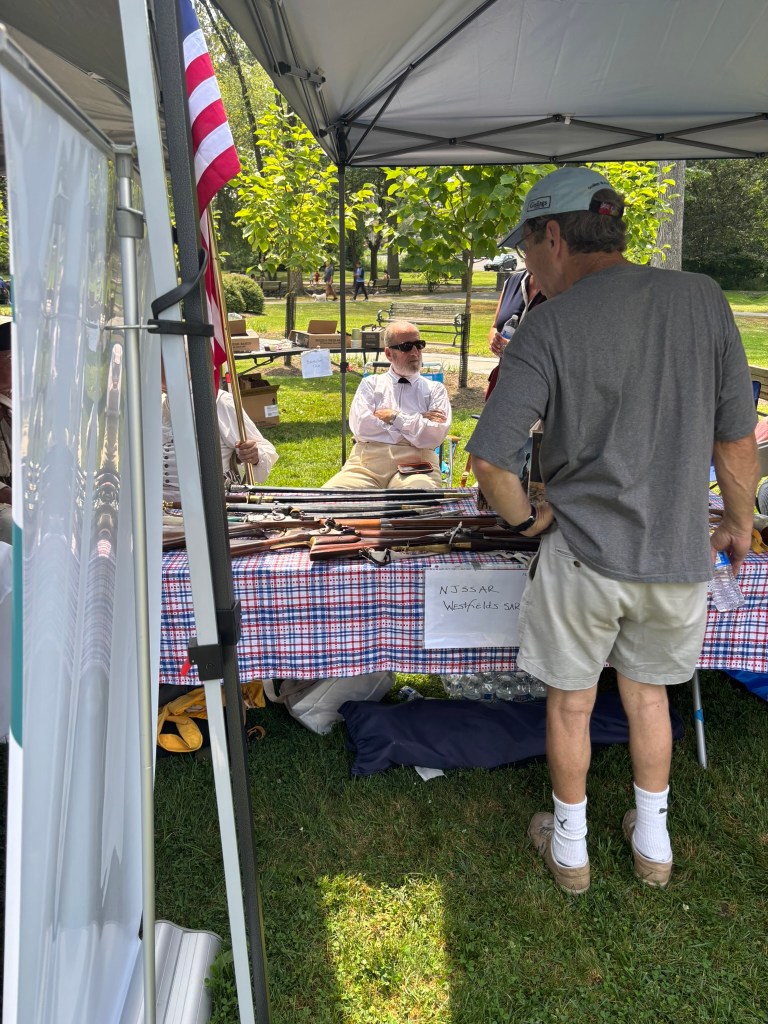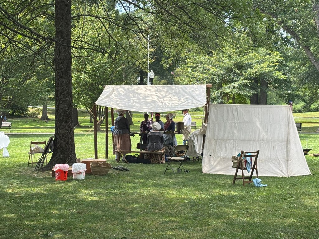 Local history groups had tents set up around the park to share information, and I enjoyed chatting with members of these organizations. Among them was RevNJ, Princeton Battlefield Society, the Westfield Historical Society, Miller-Cory House Museum, Trent House Museum, Merchants & Drovers Museum, Liberty Hall Museum, Westfield Chapter of the Daughters of the American Revolution, Westfield Chapter of the Sons of the American Revolution, among others. Music from fifes and drums filled the air, giving the whole park the feel of an 18th century encampment.