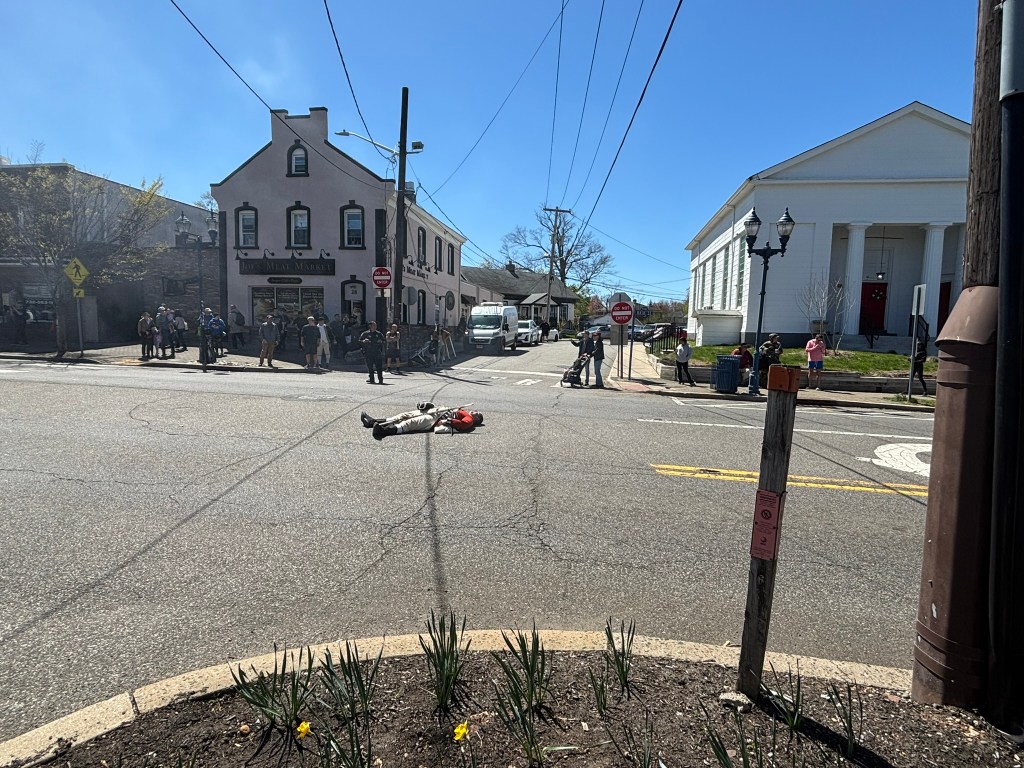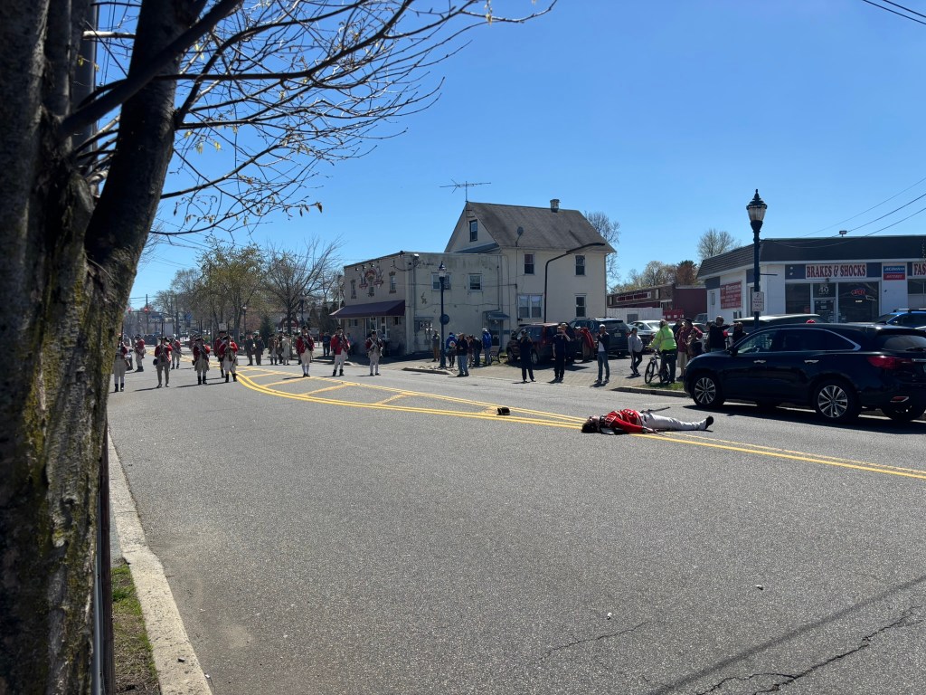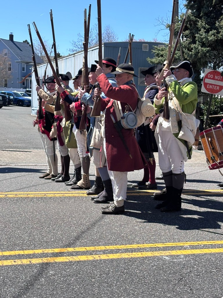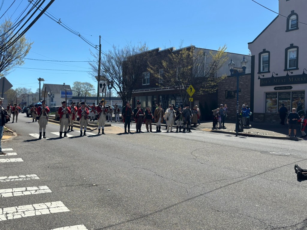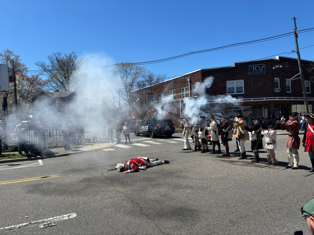My family and I arrived along Main Street for the reenactment, and it was fascinating to watch from the sidewalk as both sides fired in the middle of the street. You really felt like you were right in the action. The battle moved down Main Street, back in the direction of the Staats House, and continued for about 30 minutes. The crowd followed along the sidewalk as the action progressed. Eventually, the troops returned to the Staats House, where they formed lines and continued firing their muskets.  The grounds of the Staats House became a revolutionary encampment.  While the battle was taking place, I recorded several videos, so be sure to check out my reels of the reenactment on Instagram and Facebook.