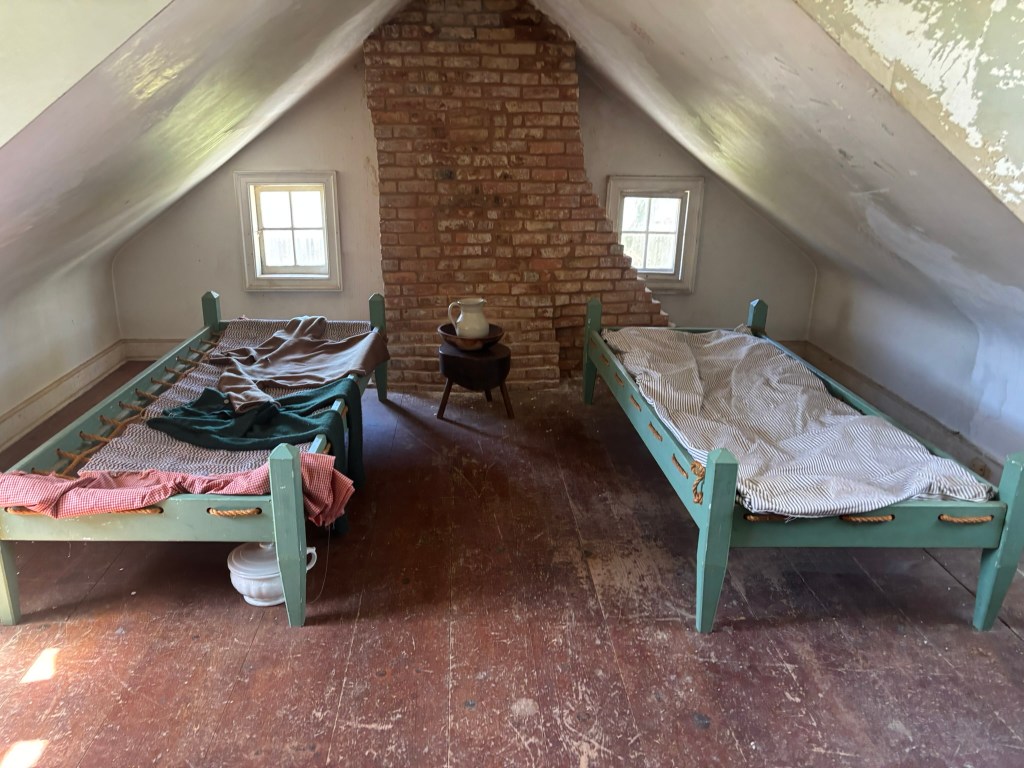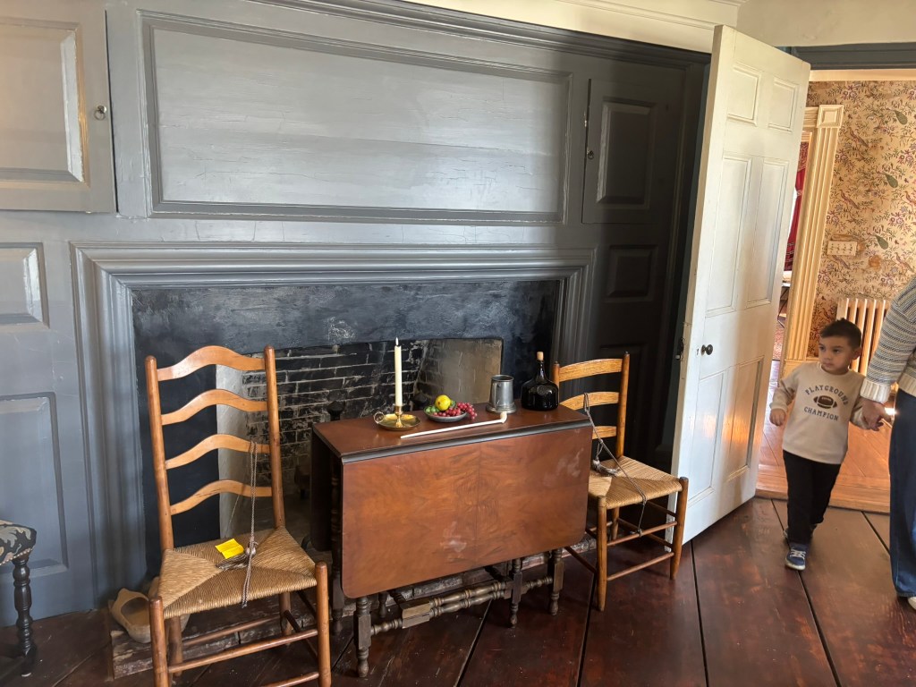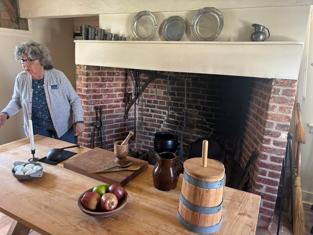 We arrived at the Abraham Staats House property at about 11 a.m., where several displays were set up across the grounds. We received a guided tour of the house, which was fascinating. The house was originally built in 1740 and sat on approximately 300 acres of land. It remained in the Staats family for almost 200 years.  It began as a modest Dutch colonial farmhouse. Over the course of the 1800s, the house was expanded, with additional rooms reflecting the growing prosperity of the family and changing architectural styles. Today, the house preserves much of its original structure, including rooms with original floors dating back to 1740.