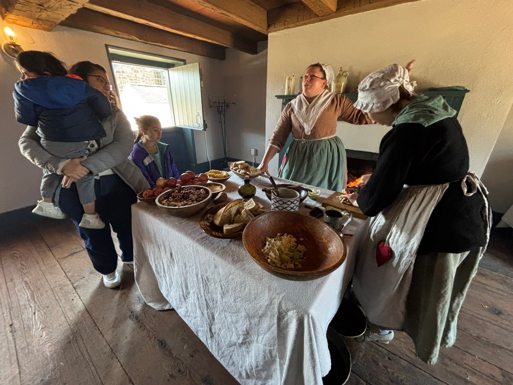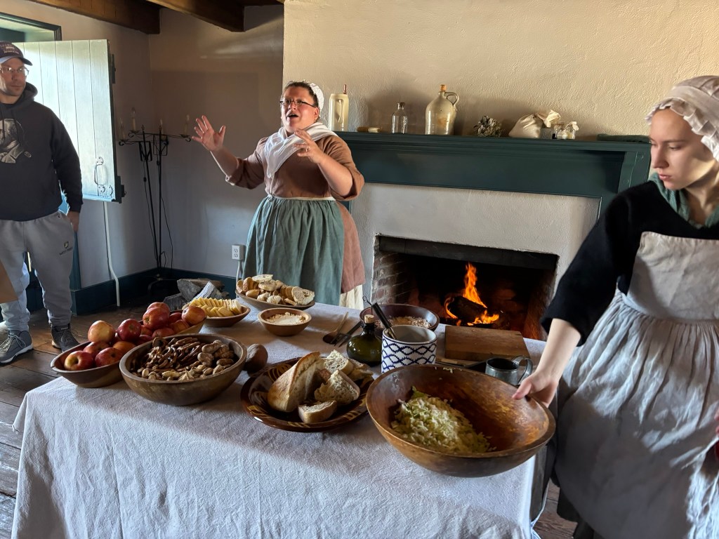 My family arrived on Sunday at about 10:30 am.  We really enjoyed the demonstration on 18th century meal preparation and cooking in the Spring Kitchen.  We were taught about what the Dey family, who were quite wealthy, would have eaten.  We were also taught about the soldiers’ meager daily rations throughout the war.  The demonstration was extremely informative and addressed the challenges that the Dey Mansion faced in hosting Washington’s entourage.