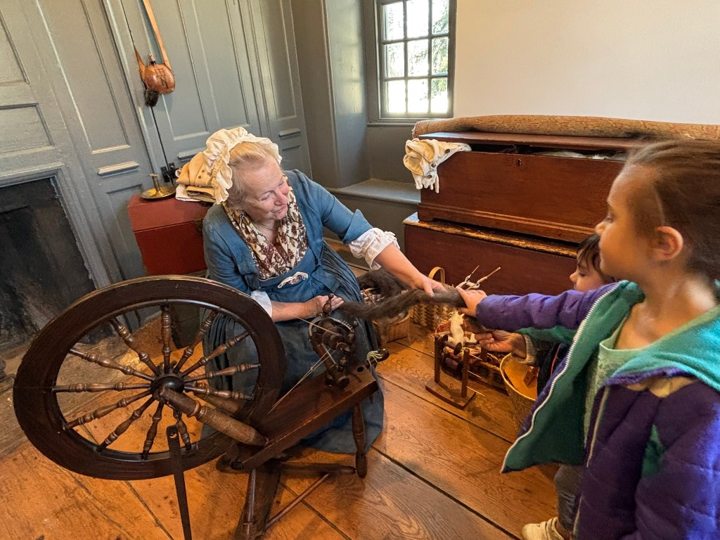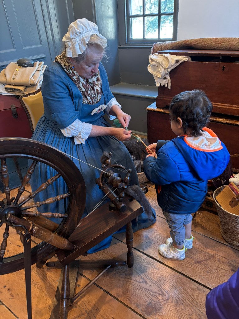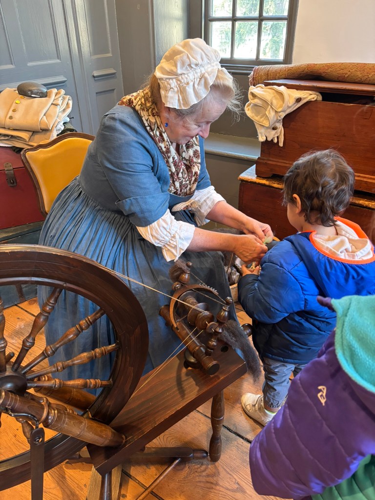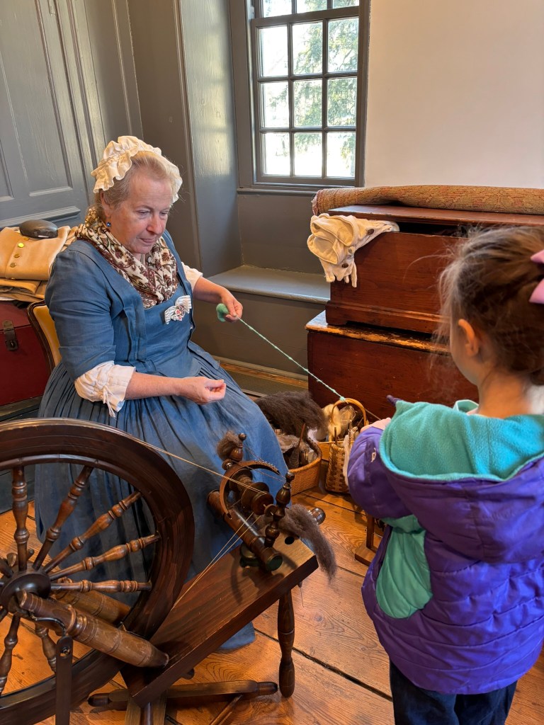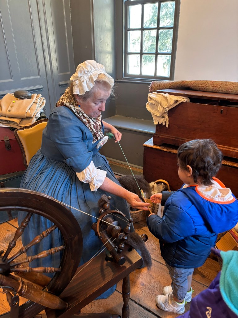 We arrived at the Dey Mansion a little before 10:30 a.m. and began by exploring several of the programs and demonstrations happening on the mansion grounds. Our first stop was a demonstration on 18th-century weaving, followed by a visit to the blacksmith’s shop, where the historical reenactors shared fascinating insights into the techniques and tools used by blacksmiths during the Revolutionary era.